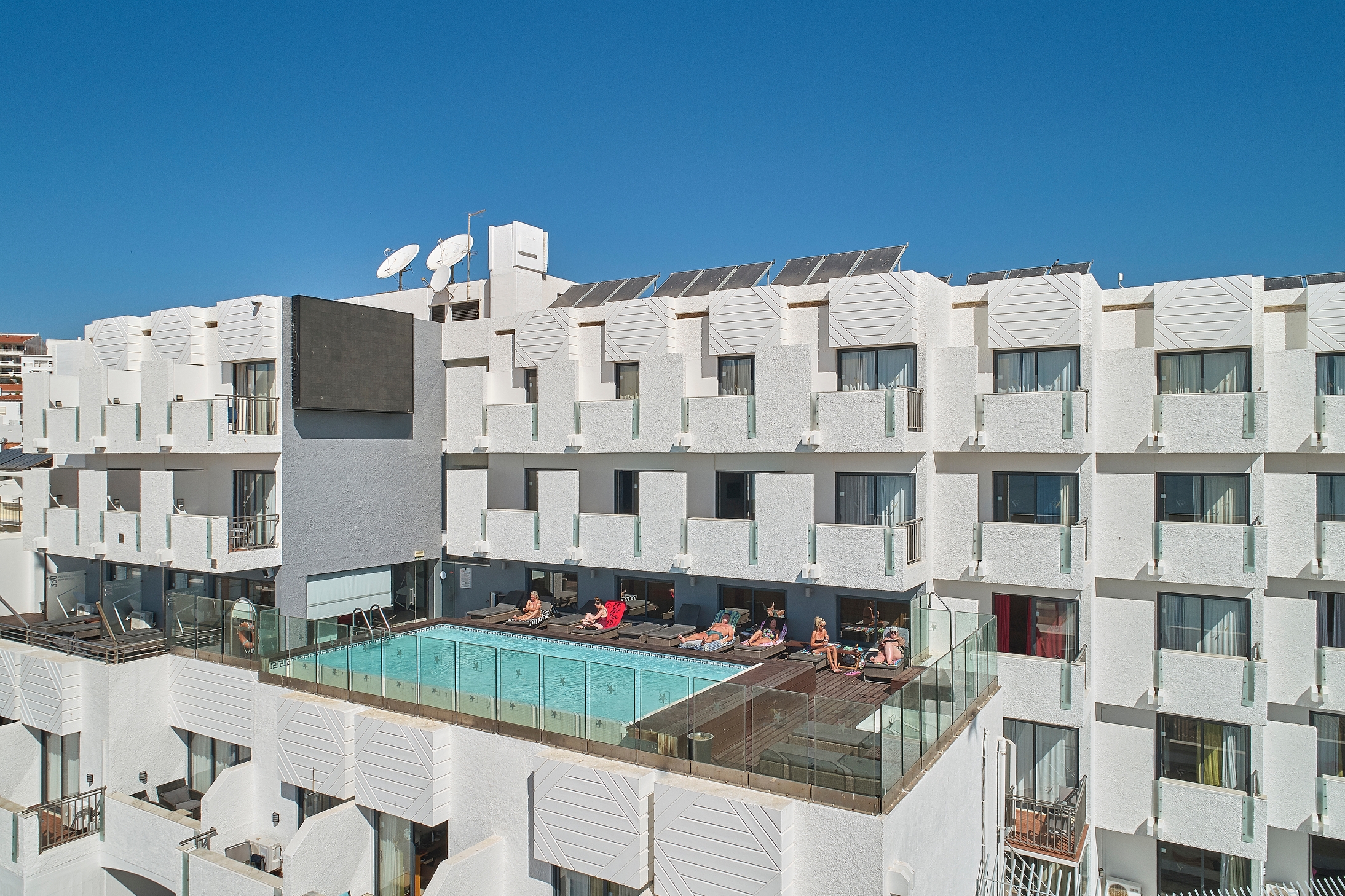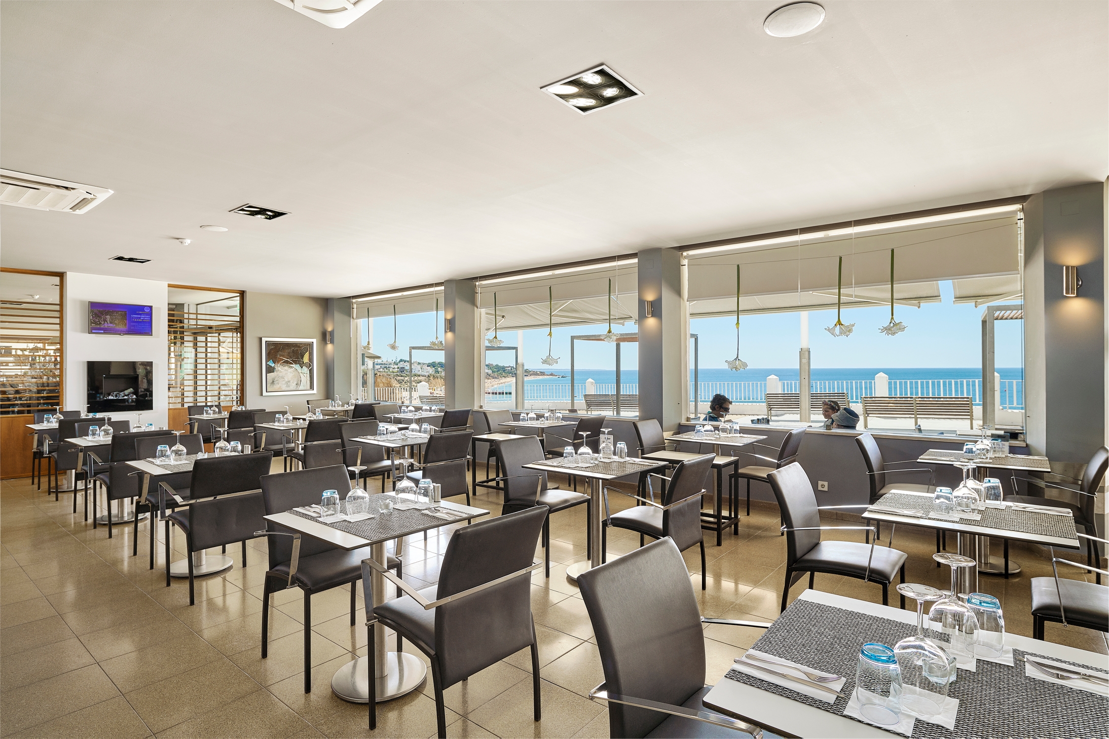 Situated on the famed Praia dos Pescadores beach, this bright, modern hotel is an ideal Algarve getaway. Just steps from an array of restaurants, bars, pubs, and shops, it offers convenient access to attractions like Aqualand Algarve, Paderne Castle, ZooMarine, Praia da Santa Eulália, and Algarve Shopping Center. Faro Airport is 45 km away. The hotel features 88 guest rooms, 52 with sea views overlooking Albufeira's beach. Each room is equipped with amenities including satellite TV, a safe, air conditioning, and a hairdryer. Guests can enjoy local and international cuisine at the hotel restaurant, with both indoor and casual outdoor seating available.