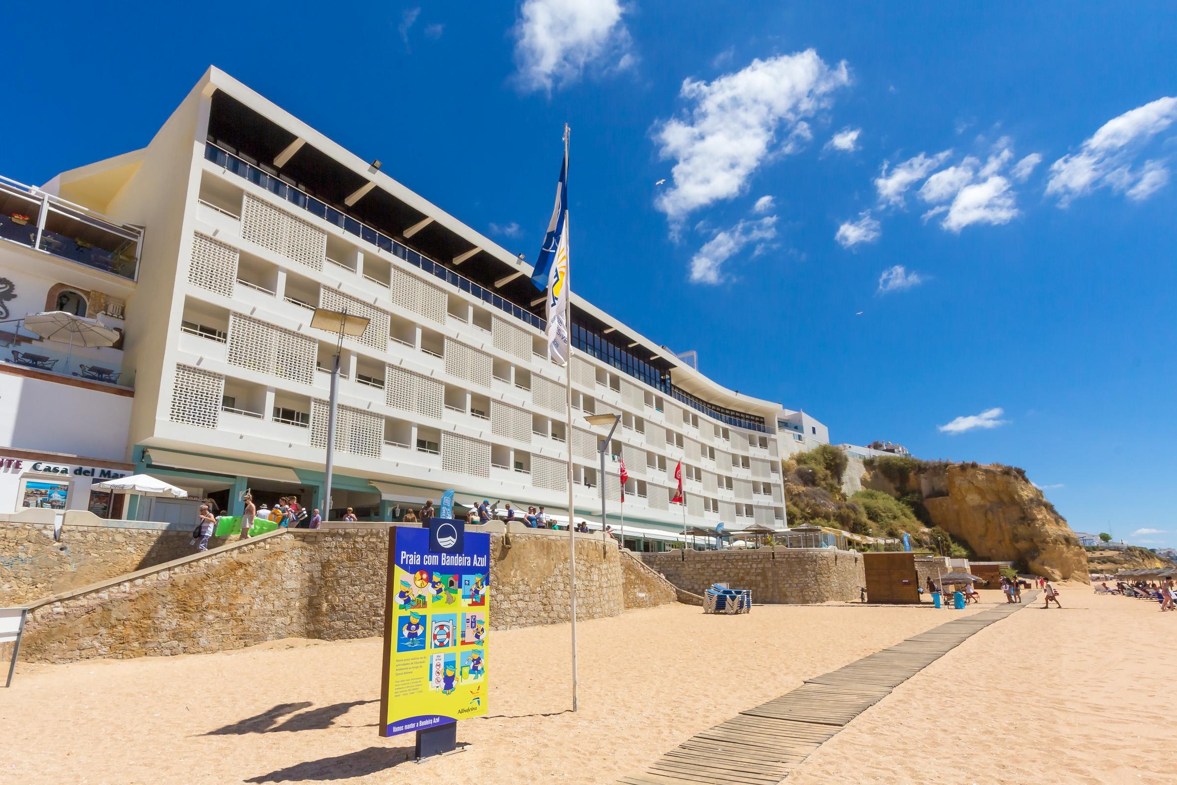 Very Good, 4This hotel is superbly located, by a long sandy beach in Albufeira. The beach and the lively promenade can be reached using the lift. There is a nearby pedestrian area with a plethora of shops and boutiques, nightlife and other entertainment opportunities, located only 2 minutes from the hotel. The hotel is just a 3-minute walk from Albufeira's Archaeological Museum. Faro Airport is about 50-minute drive away. There are bus trips to different interest points in the Algarve, such as monuments, hand-crafts, landscape and typical areas, guaranteeing a memorable adventure. The guest rooms feature beautiful views of the Atlantic Ocean, equipped with flat-screen TV/cable channels, air conditioning, fridge, in-room safe, ironing facilities, minibar and hair dryer. Guests arriving by car may use the hotel's parking area or public parking, located near the hotel.