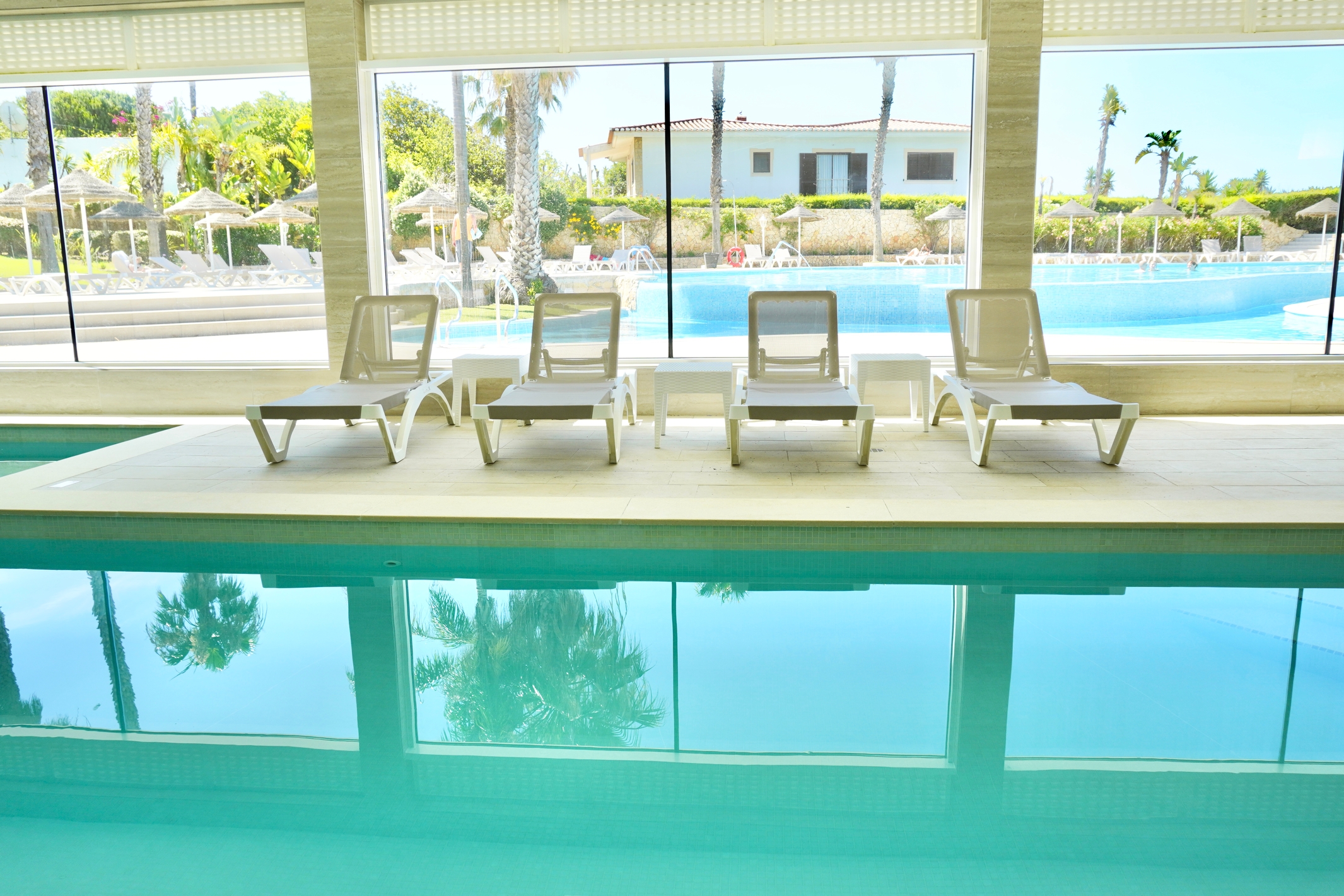 Very Good, 4The Aparthotel is located in the western part of the Algarve on a hill, from which it is possible to see the beautiful Porto de Mós Beach, just 100m away. There are several restaurants nearby and, approximately 1. 5 to 2 km away, there are bars, cafes and clubs, as well as shopping establishments. The old town of Lagos is around a 5-minute drive away. Faro airport is approximately 75 km away. The complex has a total of 71 T0 and T1 Apartments, on 2 floors. This fully air-conditioned hotel features a lobby with 24-hour reception. The hotel also has a bar and an air-conditioned restaurant with chairs for younger guests. There is also the possibility of accessing the Internet (free of charge) and taking advantage of the laundry services (extra charge). There is a car park and bicycles (for a fee) available. The apartments are modern and comfortable and include a kitchenette and bathroom. They come with a hairdryer, direct dial telephone, cable TV, radio, fridge, microwave, tea/coffee maker, safe and individually adjustable air conditioning. All Apartments also have a terrace or balcony, some with a stunning view over Porto de Mós Beach or our beautiful gardens. In the hotel's outdoor area, surrounded by a beautiful garden, there is a swimming pool, a children's pool, sun loungers and parasols. You will also have at your disposal a health center with a heated indoor pool, a sauna, as well as various massage options (for a fee). You can also work out in the fitness center.