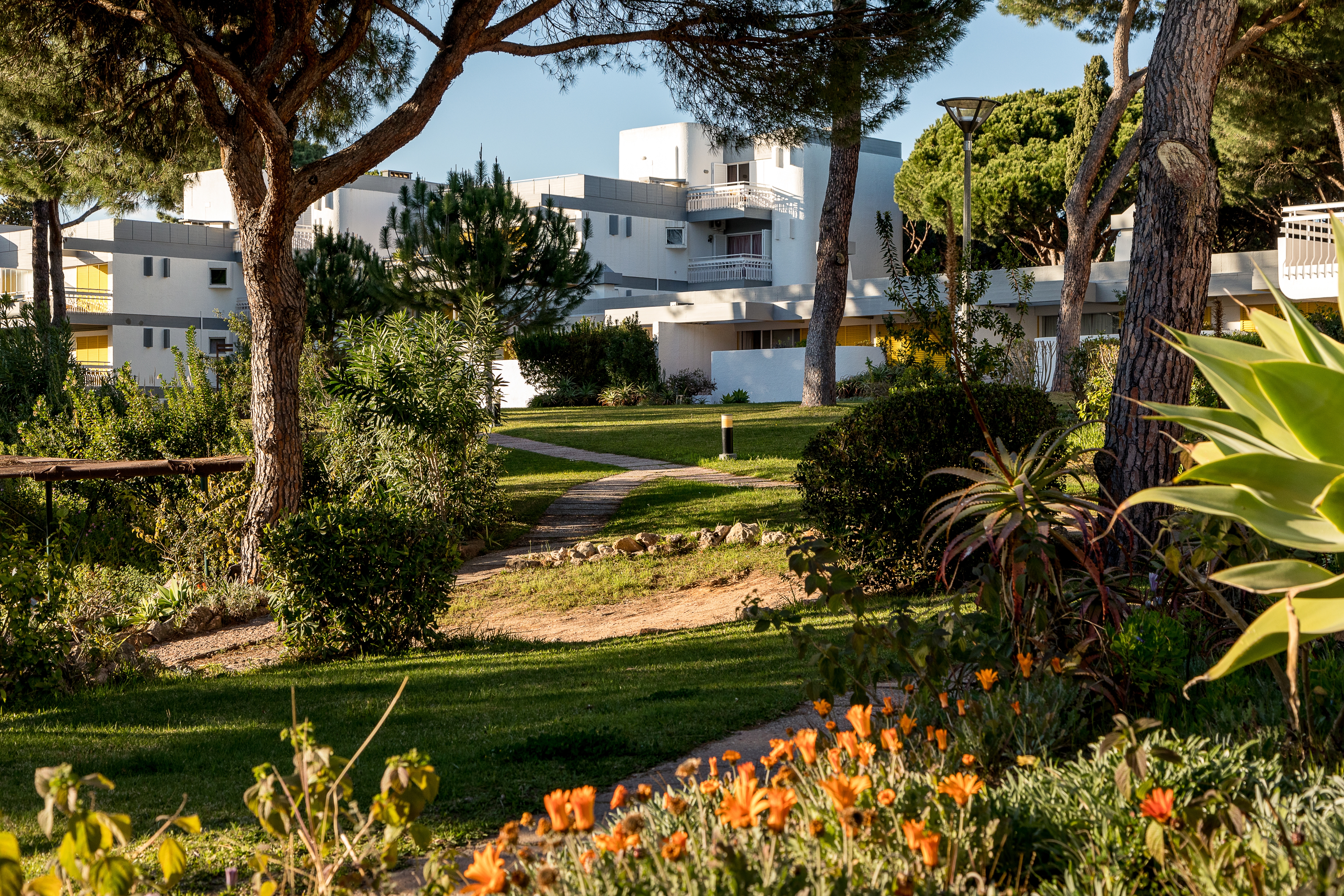 Very Good, 4.5Nestled within a magnificent green garden in a private condominium, this complex is ideally located a 15-minute walk from Vilamoura's marina and the beach, and less than 15 kilometers from Faro Airport. The hotel offers a range of facilities for a relaxing holiday, including a restaurant serving delicious dishes, a swimming pool area for both adults and children, a playground, and ample leisure spaces. Guests can also enjoy table tennis, a playing field, a pétanque court, and a multi-purpose playing field. The modern apartments are harmoniously arranged and surrounded by gardens, providing the perfect setting for an Algarve holiday. Each unit is fully equipped with all the necessary appliances and amenities for a comfortable stay for the whole family.