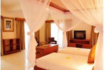 The charm of the rooms lies in the distinctive design features, for example, a unique double layered alang-alang roof with colonial style columns. All accommodation units come with a private bathroom with a shower/bathtub and a hairdryer and offer a king-size or double bed. They are equipped with a direct dial telephone, satellite/cable TV, a safe and a kitchen with a minibar. Individually regulated air conditioning is provided as standard, and each unit features a terrace.