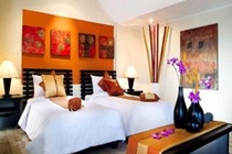 All bedrooms are fully air-conditioned with double beds and en-suite bathrooms fitted with a shower, bathtub and hairdryer. Other amenities include full entertainment units, which include satellite TV, DVD player, CD player and broadband WLAN Internet access, as well as a direct dial telephone, minibar, safe and ironing set. Each 1-bedroom Grand Suite has an open-air living/dining area and a kitchenette with tea and coffee making facilities, whereas the 1-bedroom Deluxe Suite enjoys an airy veranda.