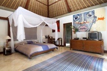 Very Good, 4.5Originally built as bungalows for their artists, the hotel integrate art with luxurious living on the banks of a river between the gallery and a jungle gorge. The Italian-Balinese fusion architecture includes marble floors and thatch \alang alang\ roofs, two shared living areas and a swimming pool with sun-lounge. There are three bungalows and three villas, each unique and each pay homage to the first rays of the sun emerging over rice fields and river gorge to grace your morning with light, air, and beautiful view.