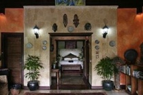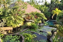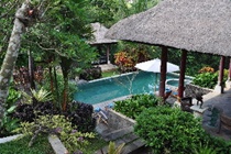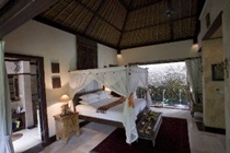The rooms are designed as a modern version of the traditional Balinese cluster compound. There are separate balés (pavilions) for eating, lounging or receiving guests, and a spa with steam bath and separate massage rooms for women and men. Each accommodation unit is en suite and fitted with shower, bathtub, hairdryer, double bed, direct dial telephone, satellite/cable TV, radio with hi-fi and Internet access. Further in-room amenities include a safe and a kitchen/kitchenette with minibar, cooker and microwave. The air conditioning is individually regulated and all rooms have either a balcony or terrace.