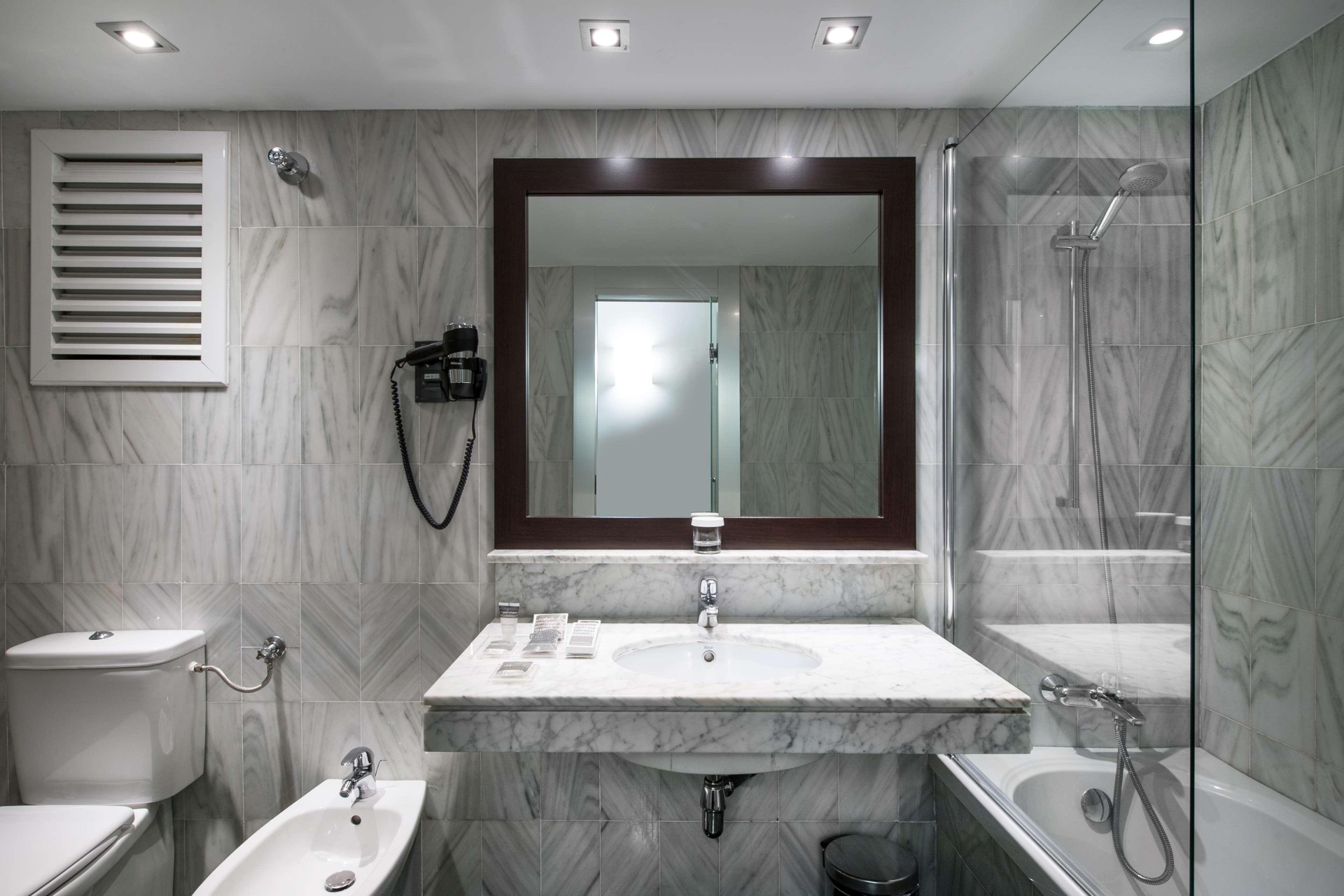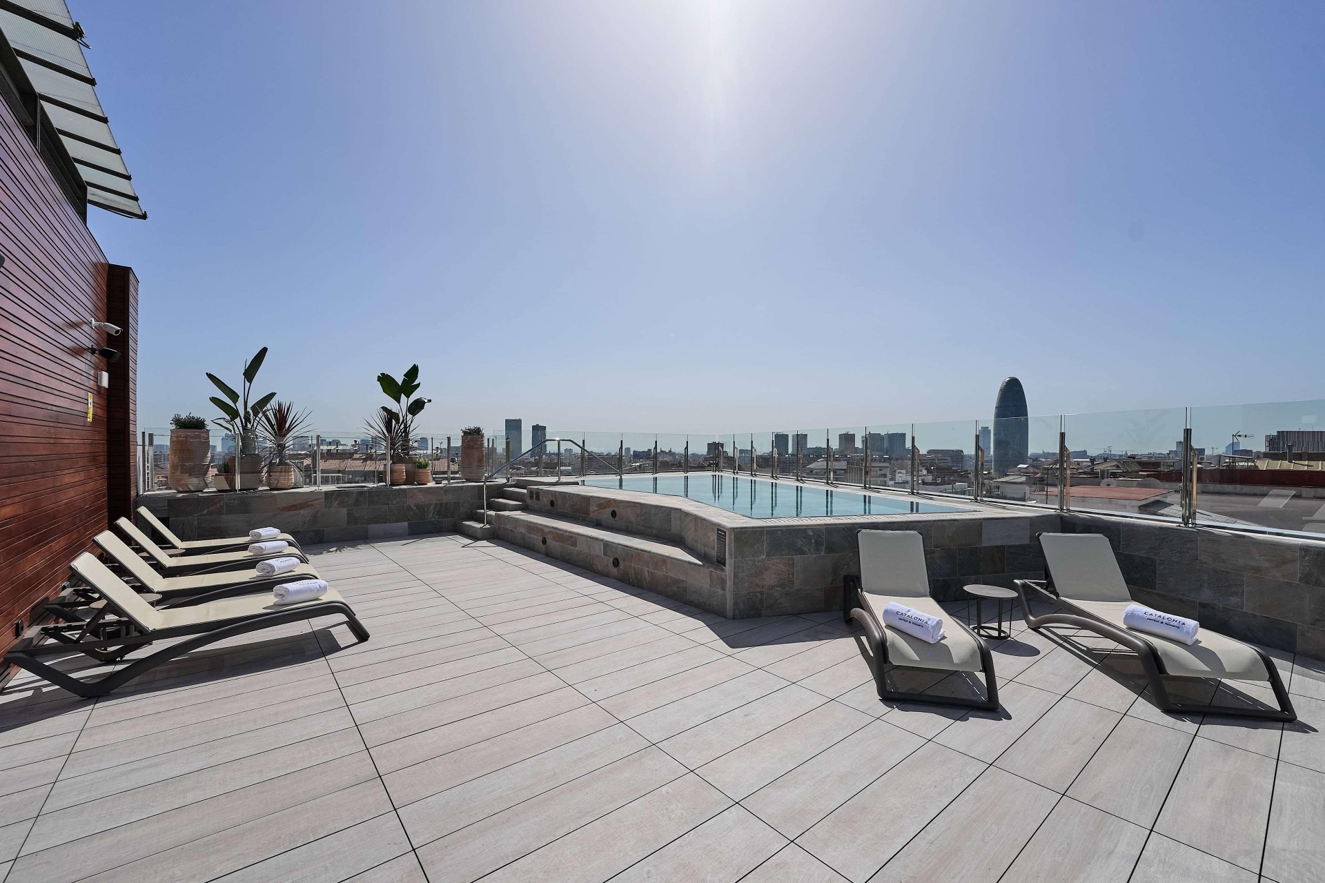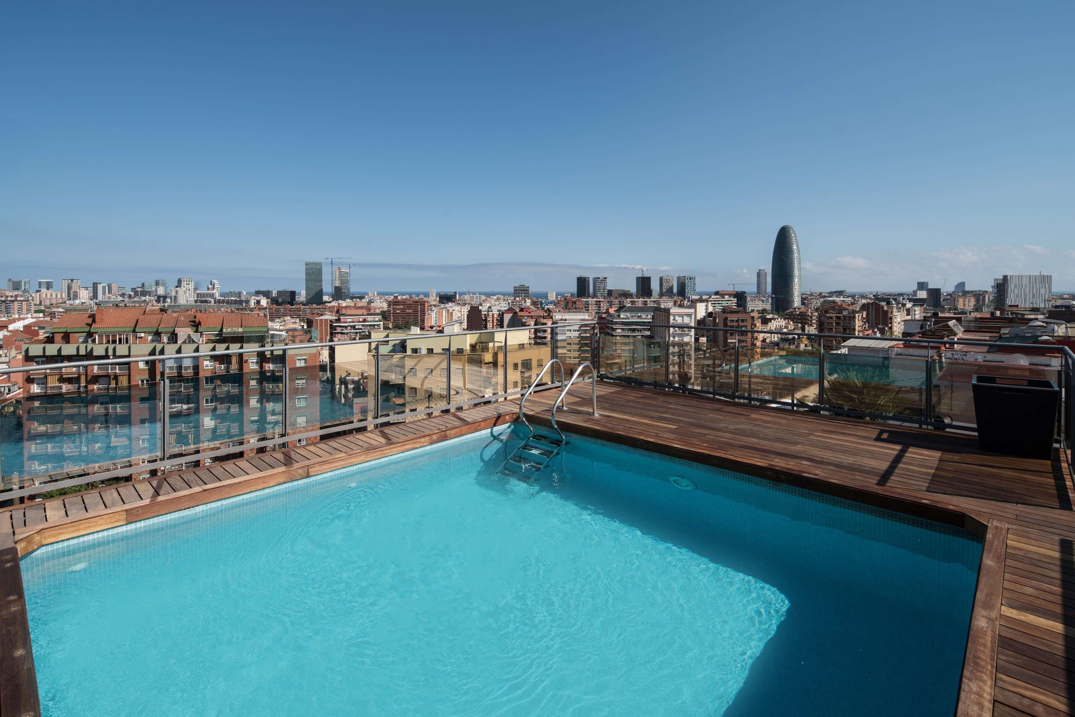 Very Good, 4Superbly located in Barcelona's L'Eixample district, this classic city hotel provides the perfect base for sightseeing. The hotel is close to La Sagrada Familia and the Catalonian National Theatre, both just a fifteen-minute walk away. Within the area, guests will be able to find a variety of cafes, bars and restaurants, and Clot metro station provides easy access to the rest of the city at only a stone's throw from the hotel. The stylishly decorated rooms feature modern amenities such as air-conditioning, en suite marble bathrooms, and complimentary internet access. Guests can wake up to a delightful buffet breakfast of pastries, cheese, cold meats and fresh fruit, and the snack bar offers light meals and drinks throughout the day. The hotel also boasts its own spa and rooftop pool with sun deck and city views. Only one dog or cat under 20 kg per room is allowed (upon request). Supplement of X night/animal and a pet deposit.