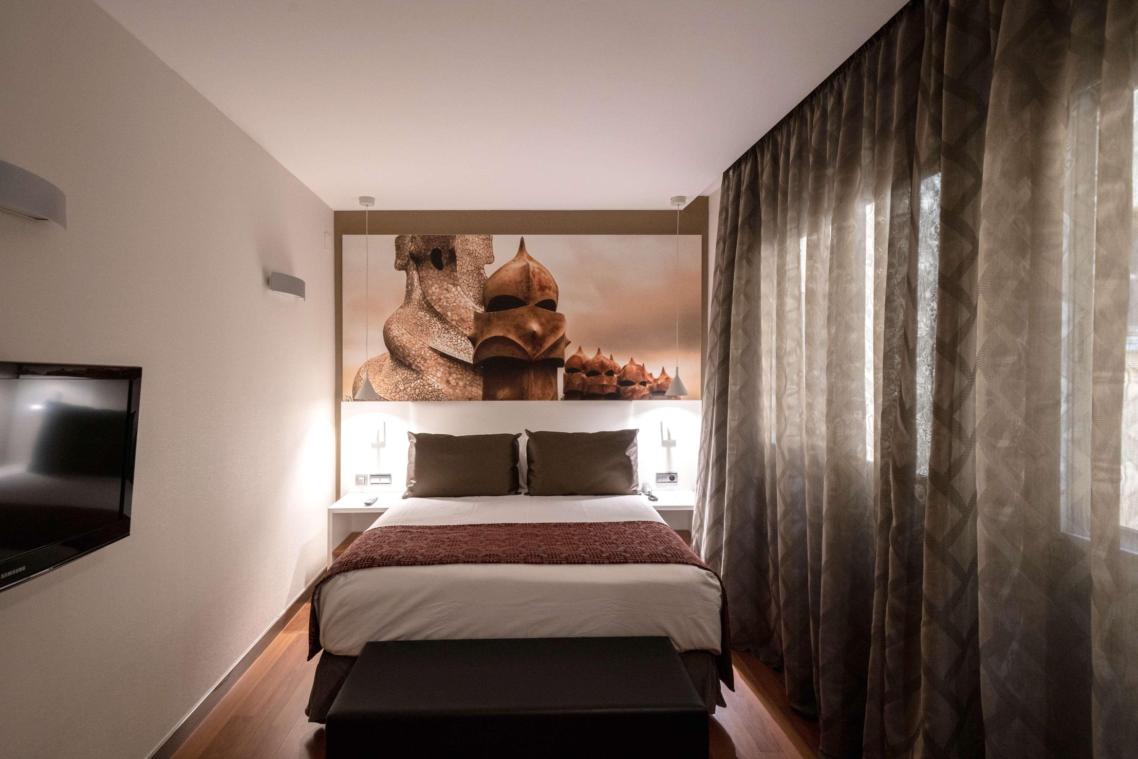 Very Good, 4Located in Barcelona's vibrant Eixample district, Catalonia Gracia is a 4-star hotel within a 15-minute walk of iconic landmarks such as Casa Milà and Passeig de Gràcia. Casa Batlló and Plaça de Catalunya are also easily accessible. Guests can enjoy recreational opportunities, including an outdoor pool, complimentary Wi-Fi, and tour/ticket assistance. The 79 guestrooms feature minibars, flat-screen televisions with cable programming, and bathrooms with shower/tub combinations. Conveniences include phones, safes, and daily housekeeping. Dining options include a snack bar/deli, room service, and a bar/lounge. Buffet breakfasts are available daily for a fee. Featured amenities include dry cleaning/laundry services, a 24-hour front desk, and luggage storage.