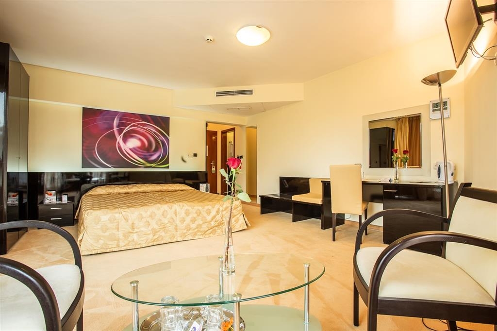 Average, 3.5Hotel Europe is situated within walking distance of Tsarigradsko Shose Boulevard, the main connection between Sofia Airport and the city center, overlooking Vitosha Mountain and Central Park, also we are very close to the diplomatic quarter. Business offices, International Exhibition Centers, sport facilities, commercial streets, boutiques, and entertainment sites - collectively create an inviting atmosphere around the property. All rooms are fully equipped and most of them provide a panoramic view of Sofia. Enjoy the comfortable and relaxing atmosphere at the Lobby Bar sipping a glass of your favorite drink after a successful business day, or visit the Sky Bar, situated on the top floor where you can enjoy the breathtaking view of Sofia City as well as Vitosha Mountain.