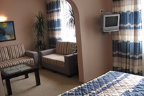 The 13-storey hotel comprises 13 suites, 133 double rooms and 45 single rooms. Guests are welcomed into a lobby with 24-hour reception and check-out service and a hotel safe. The ground floor is home to a currency exchange desk, a souvenir shop, a drug store, an excursions desk and the business centre. The mezzanine floor features a hairdressing salon and a casino. The hotel also features 3 conference halls, which seat between 25 and 40 guests and come with technical conferencing equipment, ideal for business meetings, conferences and seminars. Lift access, a pub, a bar, a restaurant, room and laundry services (the latter for a fee) and parking also feature.
