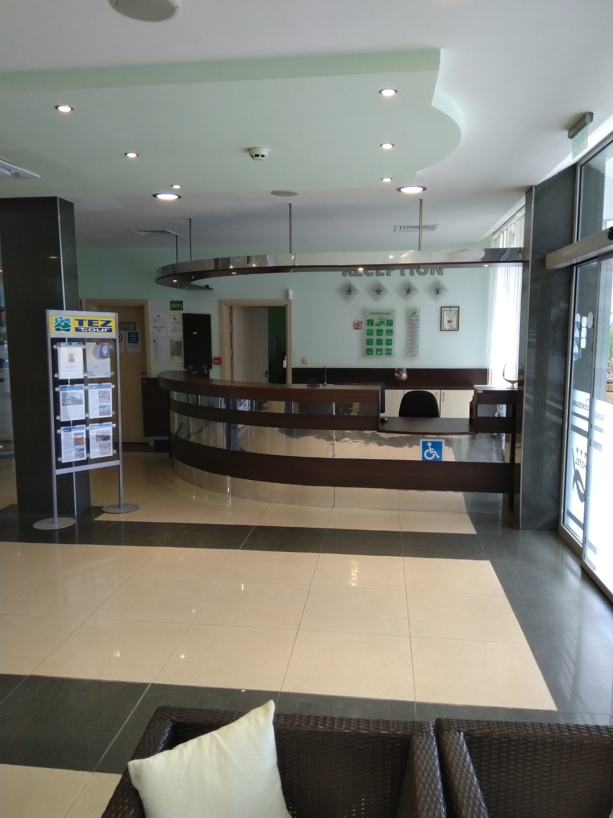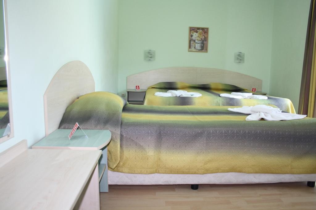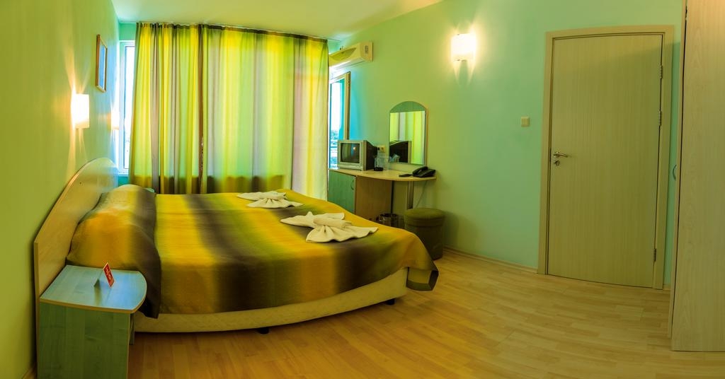 Average, 3This hotel is located in the centre of Sunny Beach on the Bulgarian Black Sea coast. The hotel is right next to the central bus station of the resort. All night spots, restaurants and bars are to be found in the surrounding area. The beach is 300 m from the hotel and it is 2 km to the Aqua Park. Facilities on offer to guests include a lobby with a 24-hour reception service, a currency exchange facility and a beauty salon. Guests may also take advantage of the bar, restaurant and room service. Parking is available for those arriving by car.