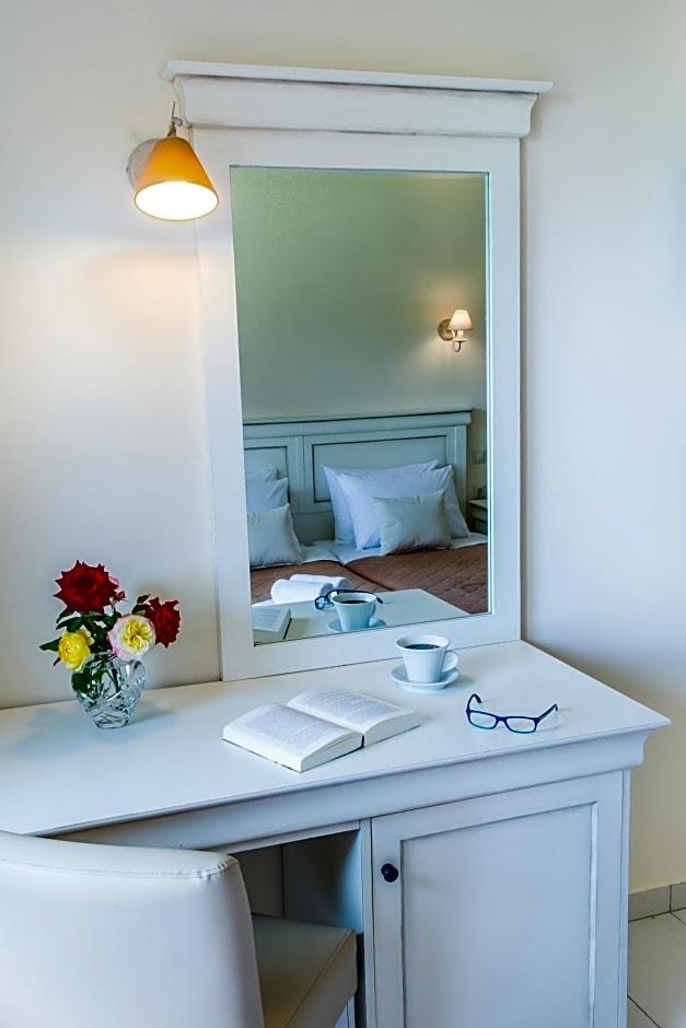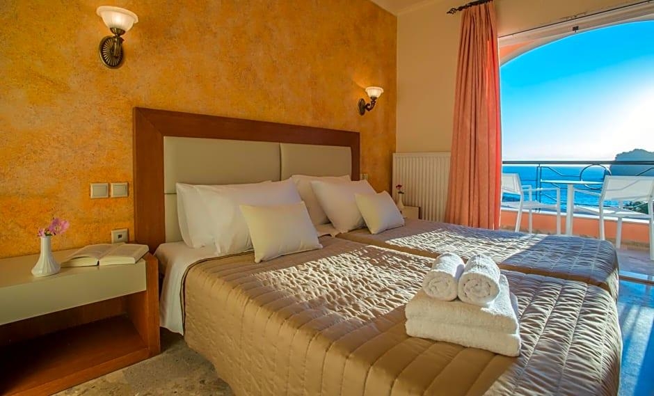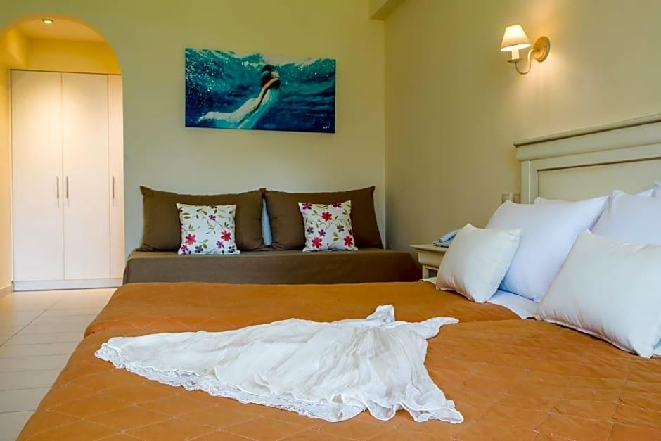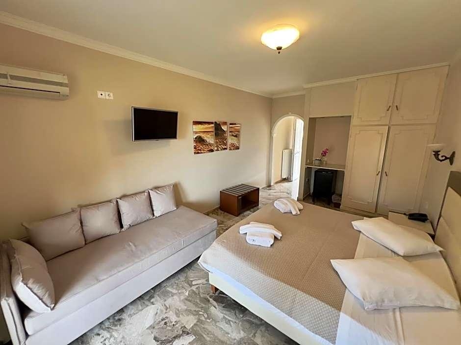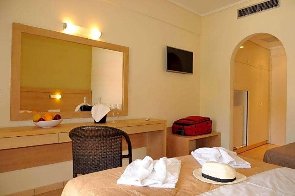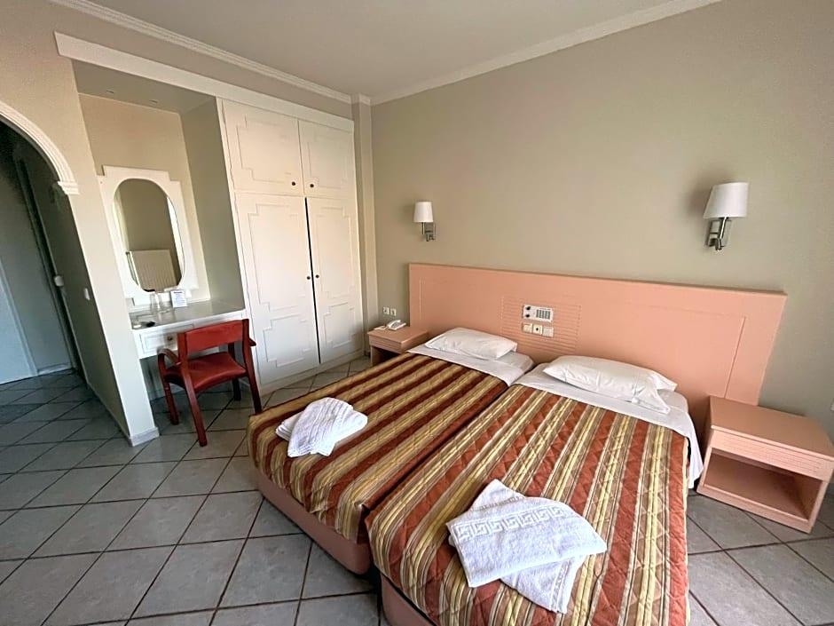 Located on the northwest coast of Corfu, just 8. 7 mi from Corfu Town, Hotel Philoxenia is found in the small beach resort of Ermones. Hotel Philoxenia offers 49 modern and comfortable guestrooms, each with a modern bathroom and a large balcony from which guests can enjoy the sea views and beautiful Corfu sunsets. The hotel has 2 swimming pools, one of which is especially for children, plus a lovely sun terrace with loungers and a pool bar. There are also 2 additional bars and a restaurant serving a wide range of food. Hotel Philoxenia is just 328 feet from the beach. There are a number of tavernas, restaurants and shops within the resort of Ermones. There is a golf club just 0. 6 mi from the hotel.