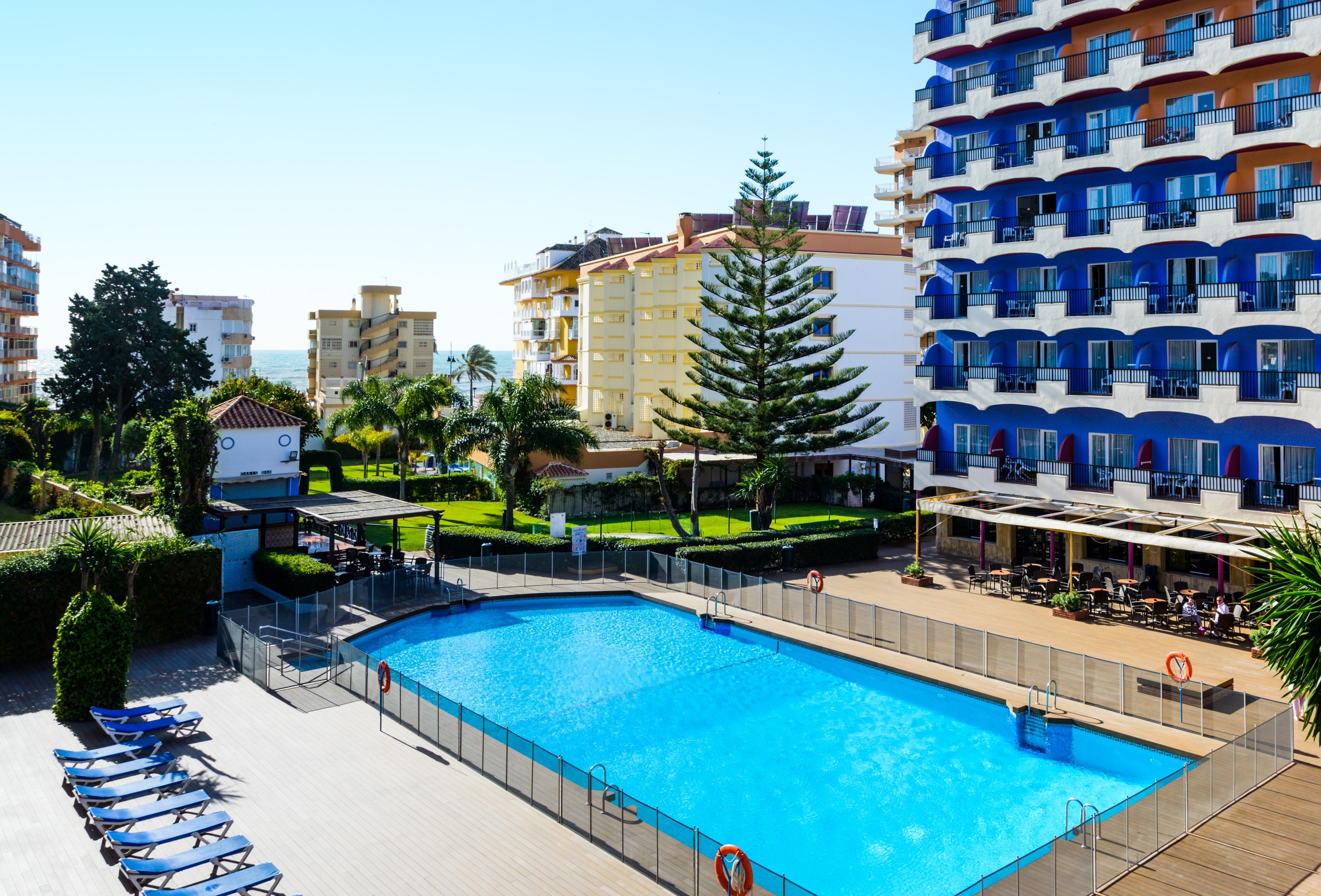 Average, 3.5This beach hotel lies in the middle of the tourist centre of Fuengirola, only 100 m from the fine-sand beach. The airport is just about 15-20 minutes away by car. Plenty of shops, restaurants, bars and public transport links are all at a walking distance. There is an area special for younger guests in the kids' club. Visitors can spend the day by the side of the pool or have a delicious meal in the restaurant tasting national and international flavours. The complex offers a rich variety of recreational activities to choose from. The rooms are decorated with a combination of warm colours and wooden furniture, which creates a cosy atmosphere. They are also equipped with comfortable beds and all he essential amenities needed for an unforgettable stay.