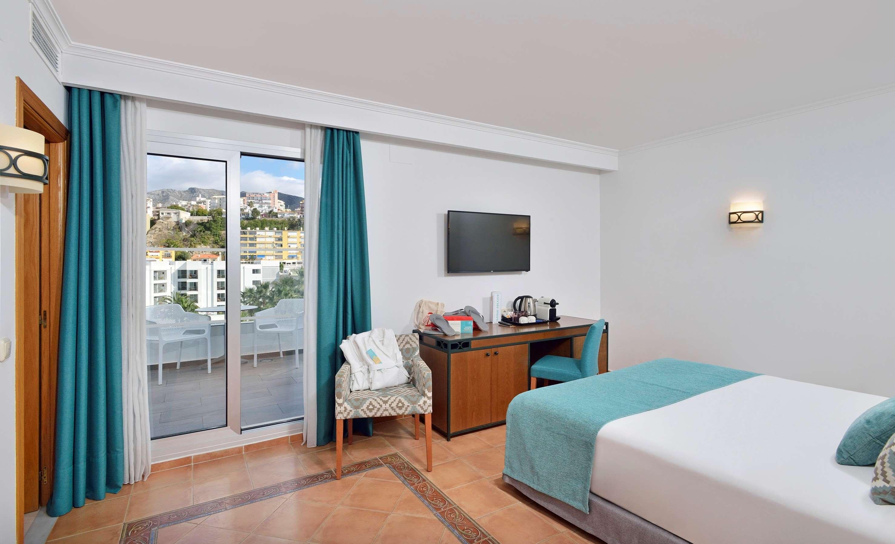 Very Good, 4This contemporary hotel lies directly beside the Playa de Bajondillo in Torremolinos, just a few minutes from the city centre. A diverse selection of shops, bars and restaurants are to be found in the vicinity and the beachside promenade that extends as far as the idyllic fishing district of La Carihuela or Benalmádena Marina is ideal for a stroll. Whether travelling for leisure or business, guests will be enchanted by elegant and modern facilities, exceptional services and welcoming atmosphere. This fabulous hotel boasts enchanting rooms, featuring cosy furniture and blend of natural tones complemented with top-notch amenities. Some rooms offer stunning views over the sea, pool or landscaped garden. Visitors will delight in fabulous dining options serving national and international cuisines and theme dinners. This impressive hotel offers 6 outdoor pools, 2 paddling pools and 1 indoor heated pool as well as a well-equipped gym, tennis courts and kids' club.