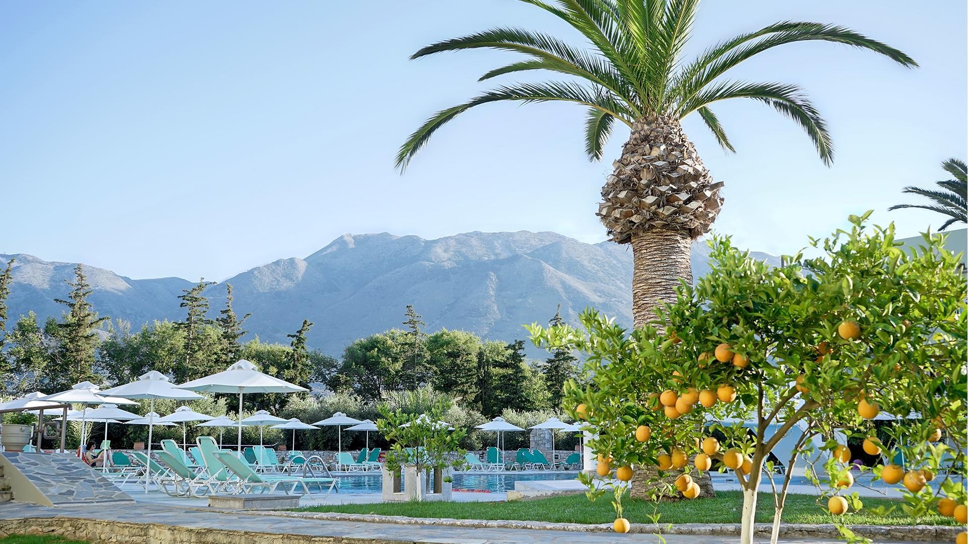 Nestled between Rethymno and Chania, this hotel offers easy access to Crete's highlights, including its longest sandy beach and the picturesque Lake Kournas. Set within a sprawling 22, 000 m² organic olive garden, the hotel provides a tranquil natural escape. Spacious accommodations boast views of the pool, gardens, or the White Mountains. Guests can enjoy the Veranda bar in the main building and dine at the poolside Elies restaurant, which utilizes fresh, organic produce. Additional features include a farm with animals and a shaded children's playground amidst the olive trees. All rooms are equipped with a double or twin beds, a spacious bathroom with a bathtub and hairdryer, satellite TV, a fully equipped kitchenette with a mini-fridge, a telephone, a safe, and air conditioning.