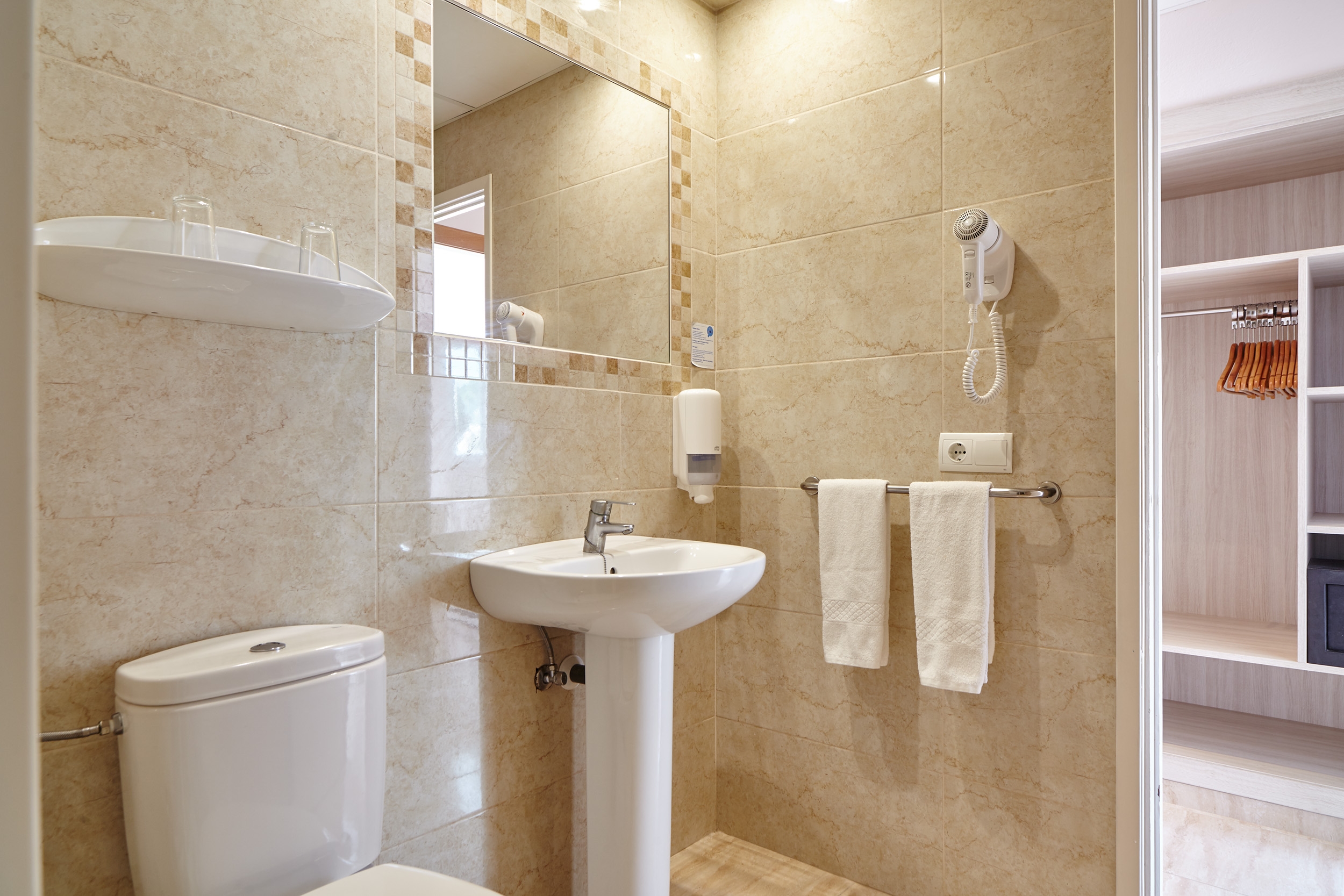 Very Good, 4Enjoy your stay at Hostal Mar y Huerta, located in the heart of Santa Eulalia del Rio, just steps from Playa de Es Canar and a short walk from the vibrant Punta Arabi Hippy Market. This charming beach hostal offers an outdoor pool, bicycle rentals, and complimentary Wi-Fi. Relax with a meal at the restaurant, a snack in the café, or your favorite drink at the bar or poolside bar. Start your day with a complimentary buffet breakfast. Each of the 80 guestrooms features a flat-screen TV, cable programming, and a private bathroom with a shower and hairdryer. Additional conveniences include desks, ceiling fans, and daily housekeeping. The hostal also provides multilingual staff, a safe deposit box at the front desk, an elevator, and free self-parking.