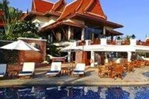Located only seven kilometers from Samui Airport and is right next to the beach with panoramic ocean views from the property. The hotel has several pools with sundecks, child pool with waterfall, gym, table tennis, basic spa, room service, laundry service and a conference room with a capacity up to 100 people. There are 4 bars and a restaurant serving Thai, European and Western food, with views of gulf of Thailand and Choengmon beach. Each room has a private terrace or garden with a bathroom with walk in shower. The rooms are decorated with Thai-style wood furnishing and facilities include A/C, telephone, TV, safe, mini bar, coffee/tea maker, internet access and a work desk.