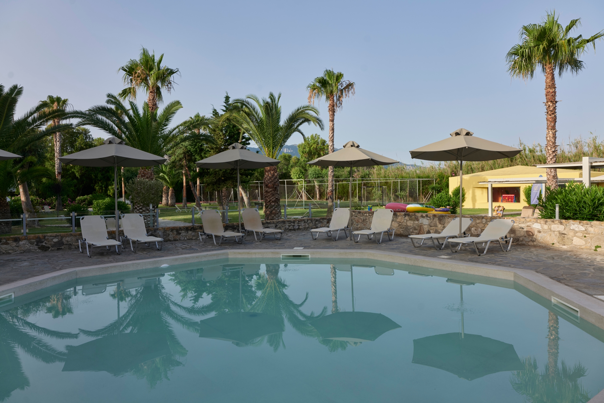 This award-winning hotel is the perfect spot for a relaxing getaway. Experience ultimate comfort in inviting accommodations, each featuring essential amenities and a private balcony—a perfect retreat after a day spent by the pool or exploring Kos. Enjoy the main pool or let the children splash in their own dedicated pool. Unwind on the sandy beach, perfect for swimming or relaxing under an umbrella. As the sun sets, be entertained by themed Greek, Mexican, and Italian nights. Savor Mediterranean and international dishes, or enjoy refreshing cocktails by the pool. The hotel's bars and restaurants make every meal a relaxed delight. Nestled in the heart of Lambi, the Atlantica Thalassa Hotel offers easy access to the nearby town of Kos, where you can explore ancient ruins, enjoy delicious local cuisine, and discover charming villages and breathtaking landscapes.