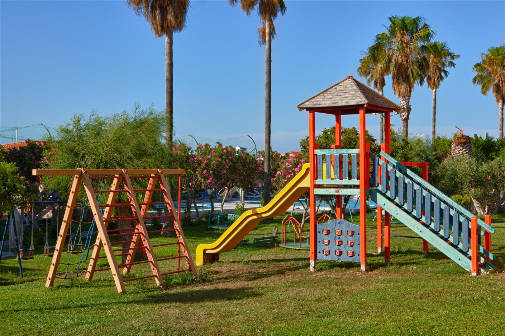 This hotel is a pleasant 15-minute walk from Tigaki, Kos' most beautiful beach. Established in 1980 as a family-run business, it prioritizes warm hospitality to ensure excellent guest services. Set within 10, 000 m² of beautiful gardens, it offers ample opportunities for games, delicious food, excellent drinks, and much more. Two large swimming pools provide plenty of space for sunbathing or relaxing with a refreshing cocktail from the poolside bar. Younger guests can enjoy the children's playground or a dedicated pool section. Tennis and basketball courts are also available. The Archaeological Museum is 14 km away, Kos Town is 12 km away, and Kos International Airport is 14 km away.