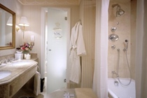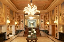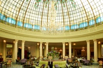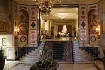 The hotel occupies a stunning mid-rise property constructed in 1912, and boasts an impressive, stained glass dome. The soberly decorative facade features intricate carving, stone balconies and large, arched windows on the lowest floor.