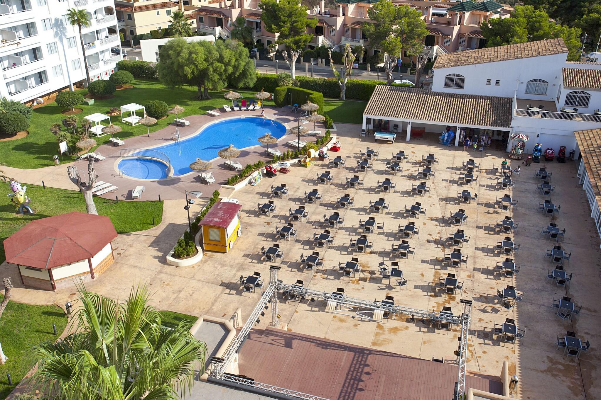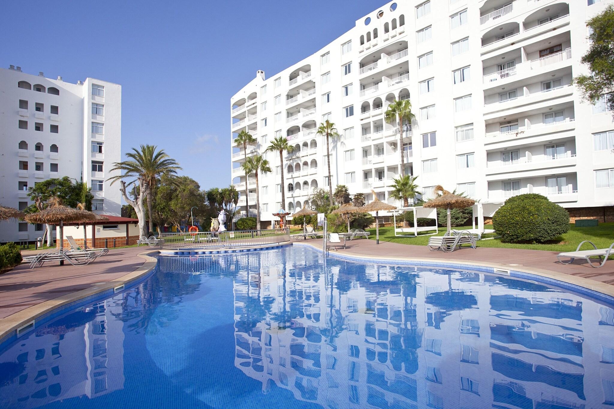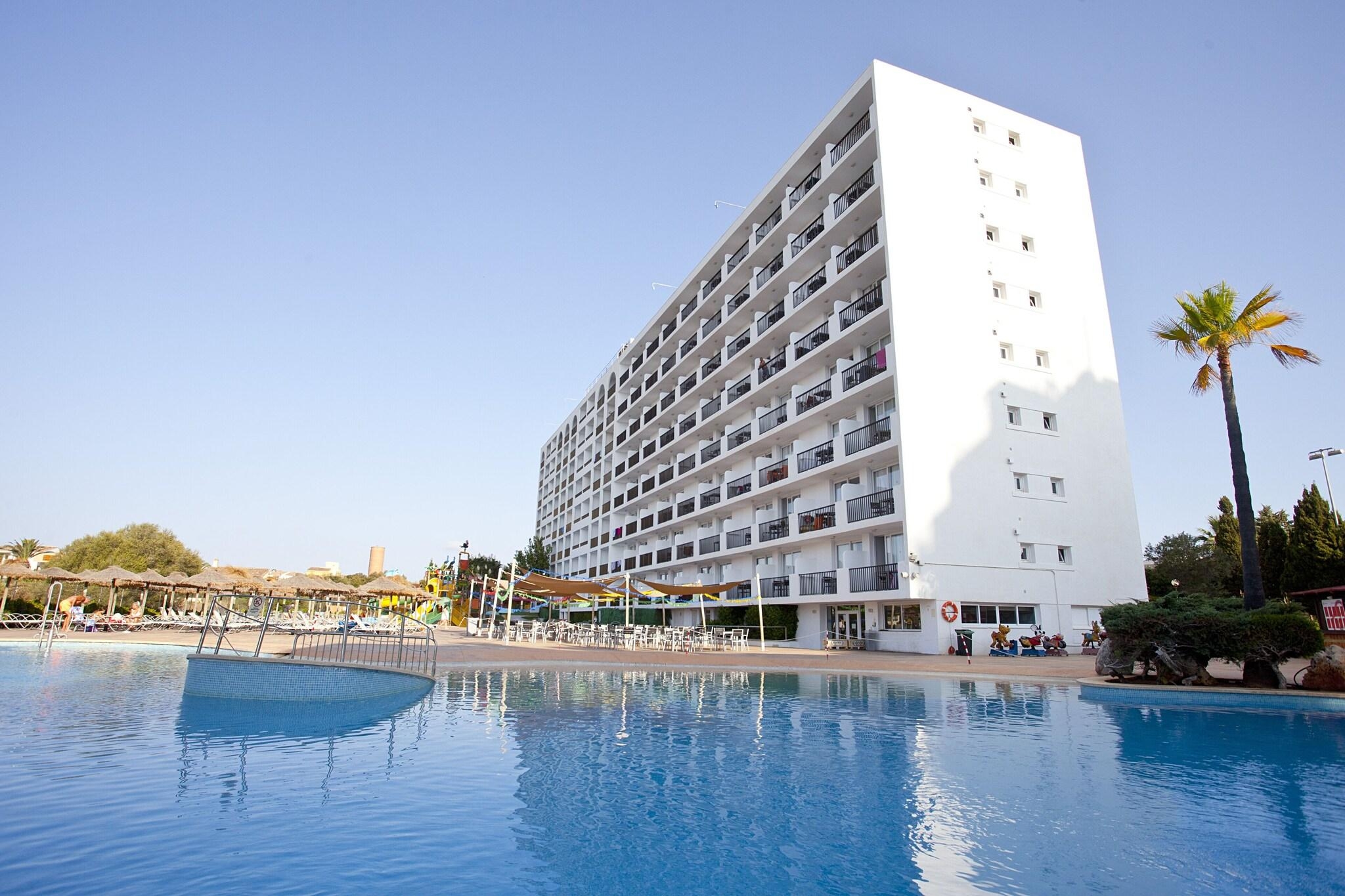 Very Good, 4Enjoy any of the four outdoor swimming pools or other recreational amenities, including a complimentary water park and bicycle rentals. This hotel also offers complimentary wireless internet access, concierge services, and an arcade/game room. The complimentary beach shuttle makes getting to the beach a breeze. All-inclusive rates are available, covering meals and beverages at onsite dining establishments. Charges may apply for dining at some restaurants, special dinners and dishes, some beverages, and other amenities. You can enjoy a meal at the restaurant or grab a snack at the snack bar/deli. Unwind at the end of the day with a drink at the bar/lounge or the poolside bar. Featured amenities include a 24-hour front desk, multilingual staff, and luggage storage. Free self-parking is available onsite. Make yourself at home in one of the 397 air-conditioned guest rooms, each featuring a private balcony and complimentary wireless internet access. Private bathrooms include showers, complimentary toiletries, and hair dryers. Cala Antena Beach is 0. 4 km (0. 2 mi) away, while other nearby attractions include Cala Domingo Beach (1. 2 km/0. 7 mi) and Cala Bota (2. 3 km/1. 4 mi). The preferred airport is Palma de Mallorca Airport (PMI), 60. 9 km (37. 8 mi) from the hotel.