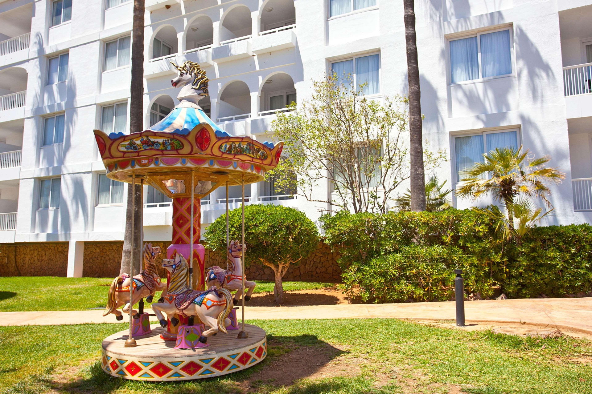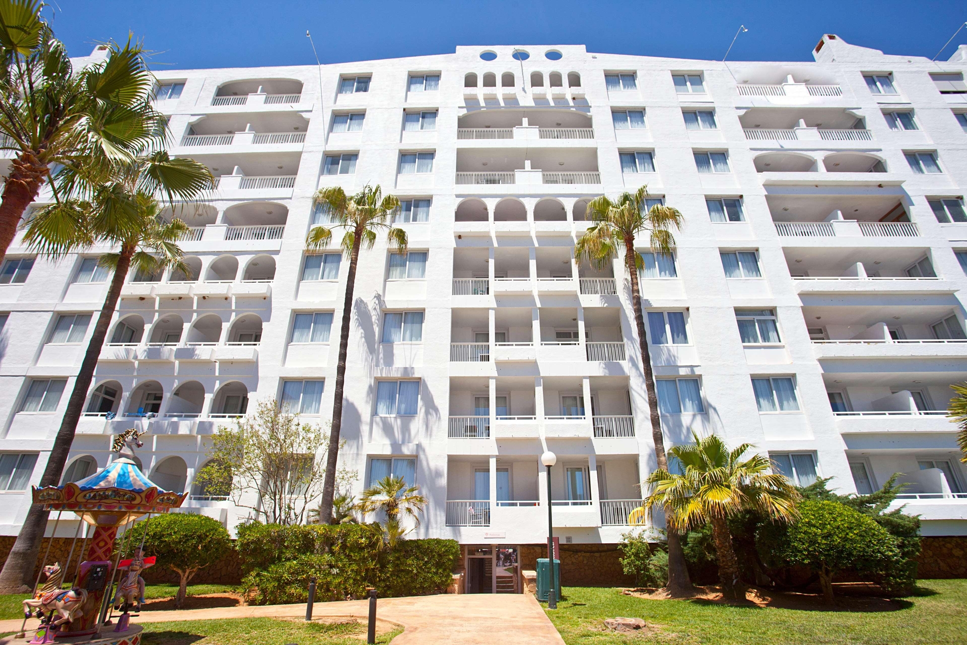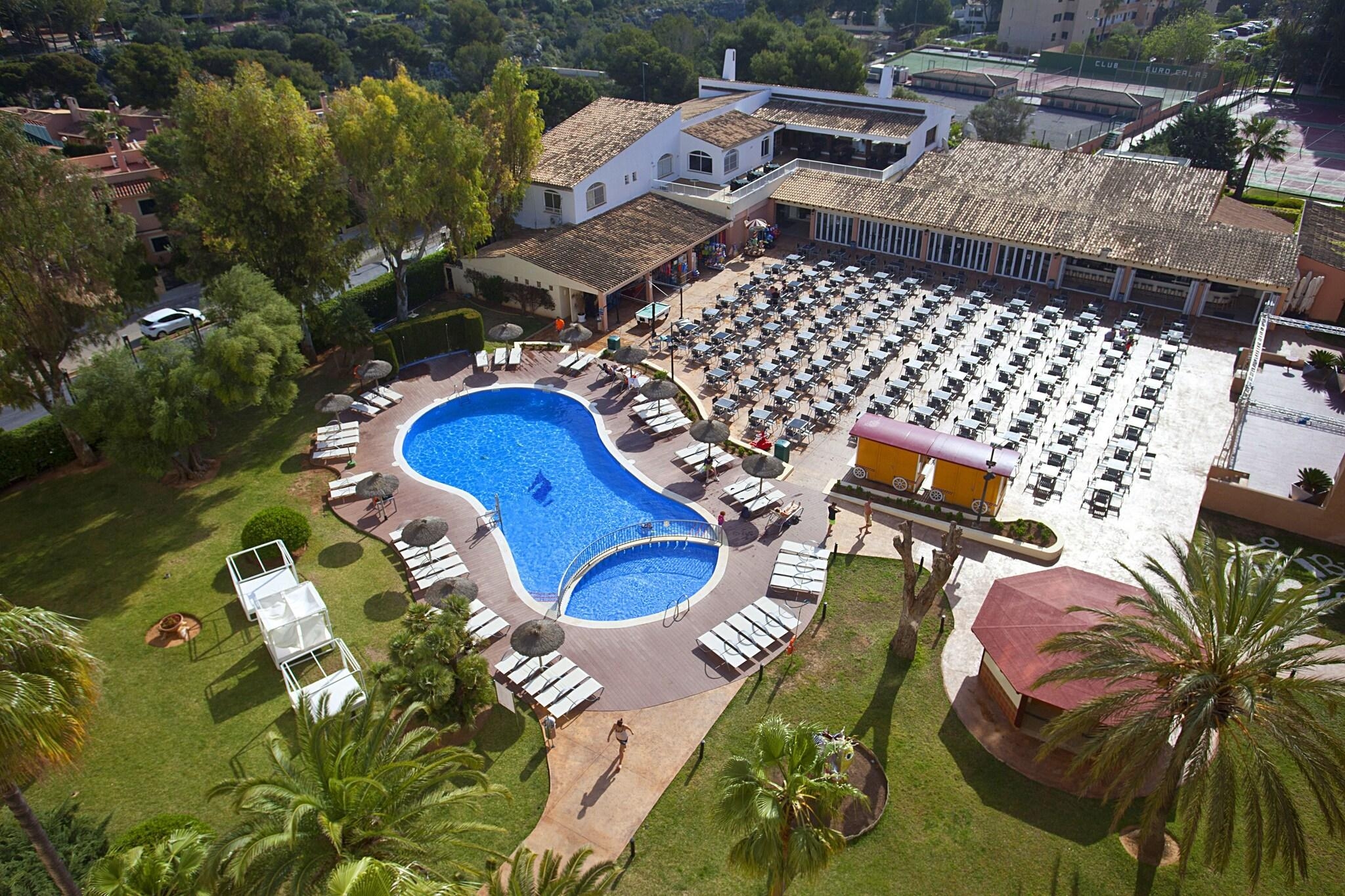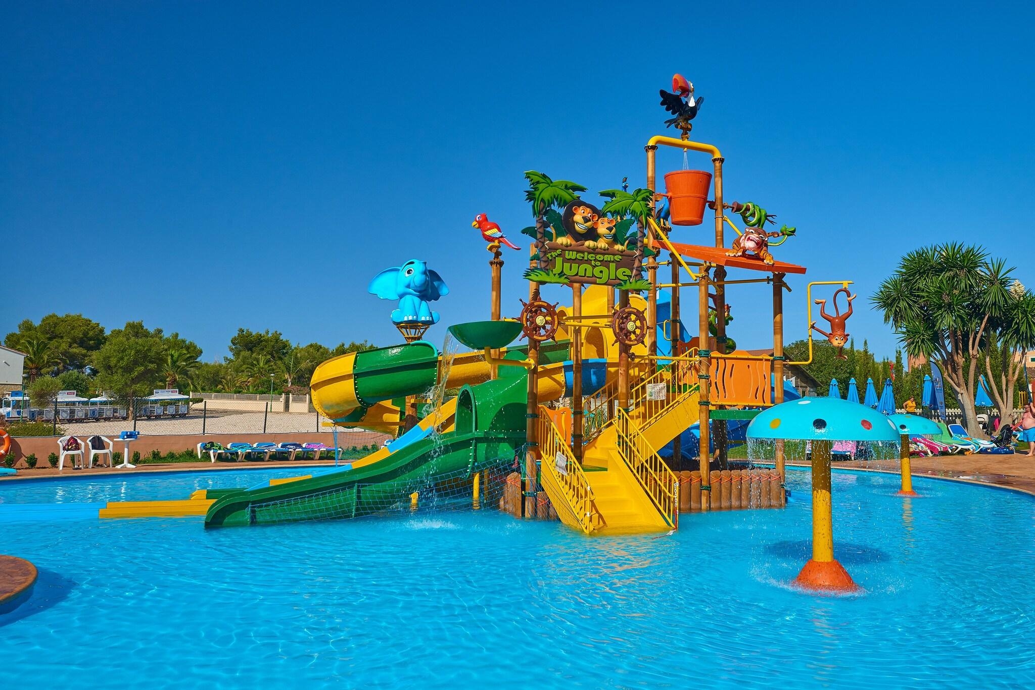Very Good, 4Enjoy any of the four outdoor swimming pools or other recreational amenities, including a complimentary water park and bicycle rentals. This hotel also offers complimentary wireless internet access, concierge services, and an arcade/game room. The complimentary beach shuttle makes getting to the beach a breeze. All-inclusive rates are available, covering meals and beverages at onsite dining establishments. Charges may apply for dining at some restaurants, special dinners and dishes, some beverages, and other amenities. You can enjoy a meal at the restaurant or grab a snack at the snack bar/deli. Unwind at the end of the day with a drink at the bar/lounge or the poolside bar. Featured amenities include a 24-hour front desk, multilingual staff, and luggage storage. Free self-parking is available onsite. Make yourself at home in one of the 397 air-conditioned guest rooms, each featuring a private balcony and complimentary wireless internet access. Private bathrooms include showers, complimentary toiletries, and hair dryers. Cala Antena Beach is 0. 4 km (0. 2 mi) away, while other nearby attractions include Cala Domingo Beach (1. 2 km/0. 7 mi) and Cala Bota (2. 3 km/1. 4 mi). The preferred airport is Palma de Mallorca Airport (PMI), 60. 9 km (37. 8 mi) from the hotel.