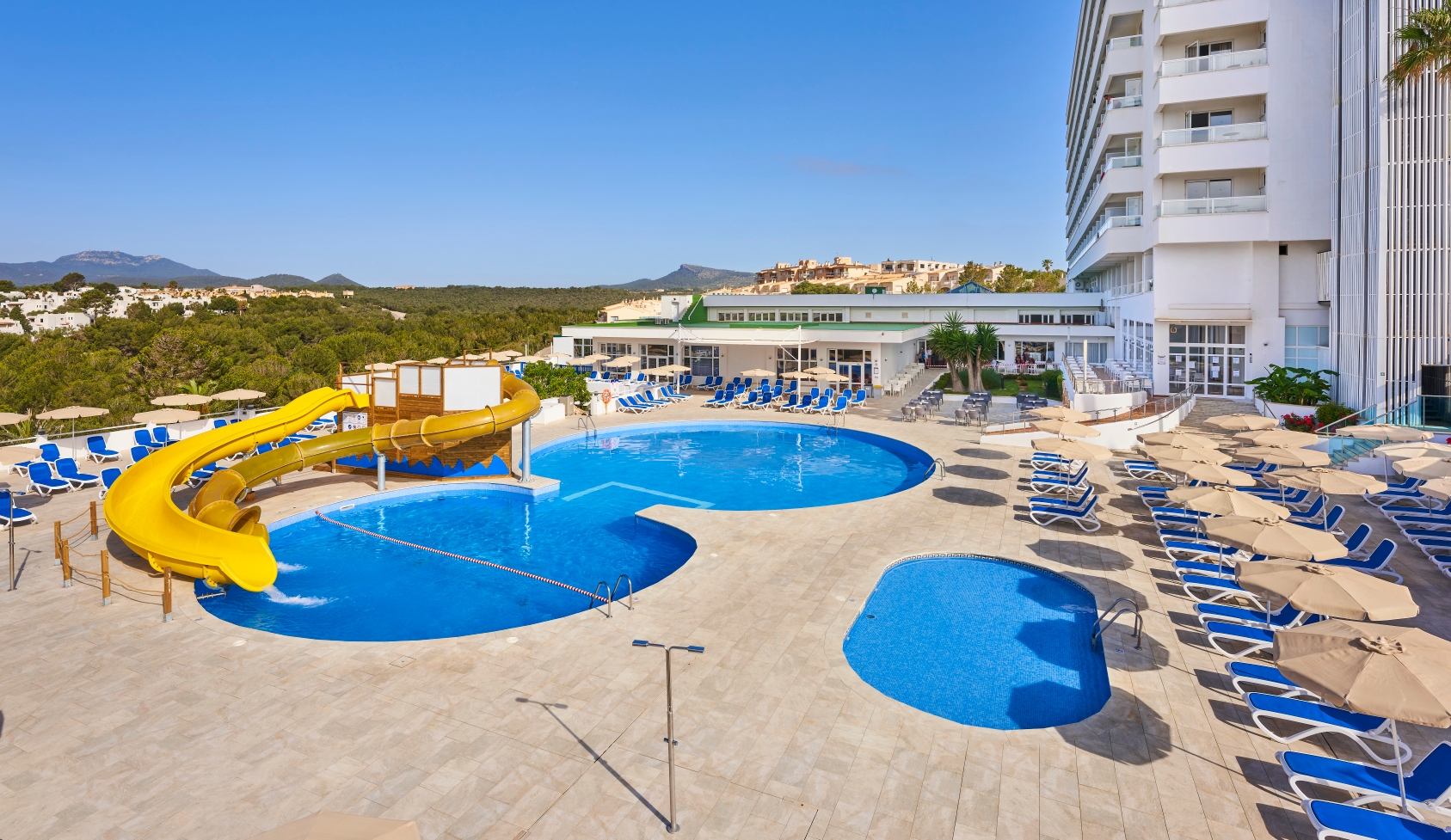 Very Good, 4Nestled within a tranquil tree-lined area on Mallorca's east coast, this sprawling all-inclusive hotel is just a short stroll from Cala Domingos Beach and offers a relaxed Mediterranean escape. A variety of shops and restaurants are within easy reach, and Palma de Mallorca Airport is 60 km away. Guests can enjoy comfortable, well-appointed rooms featuring satellite TV, minibars, and balconies, some with stunning sea views. Upgraded rooms offer additional space with sitting areas and/or bunk beds. Wi-Fi is available throughout the hotel. Overlooking a lush garden bordered by fragrant pine forests, the hotel boasts a casual buffet restaurant with a terrace, three bars, two inviting outdoor pools, and ample sun loungers. Active guests can enjoy tennis, sports courts, mini-golf, and a playground, while dedicated kids' activities provide family-friendly entertainment. Minimum-stay rules may apply.