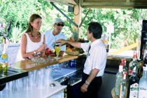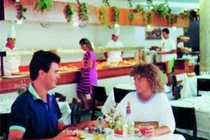 Air-conditioned restaurant serving a varied buffet of warm and cold dishes and desserts.