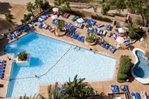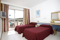 This beach hotel is located in Magalluf close to a range of shops. Those wishing to take a trip to the island capital of Palma must travel 10 km by hire car or with public transport (approximately 15 minutes). The beach lies just 300 m away, restaurants, bars and nightclubs a few paces and a golf course can be found just 500 m from the hotel.