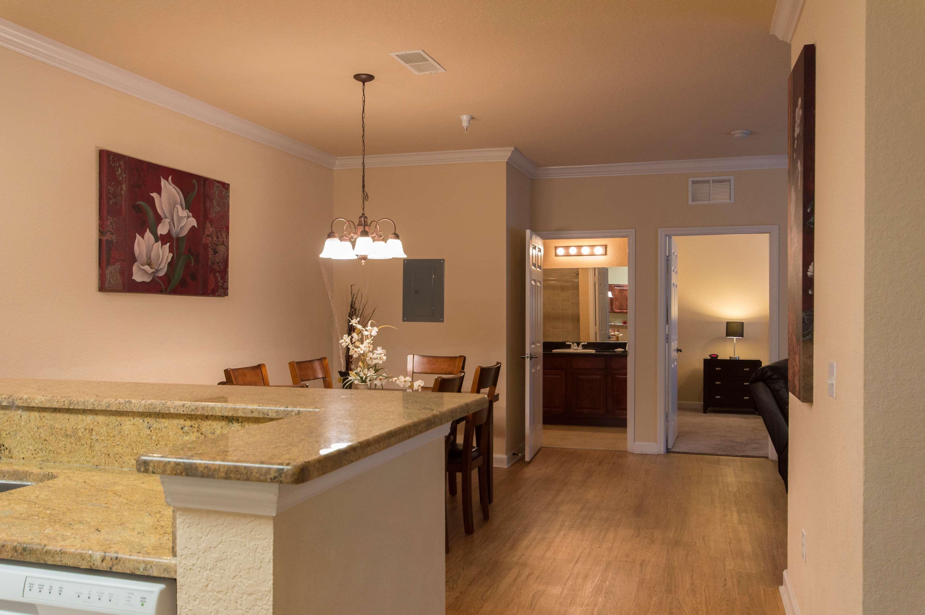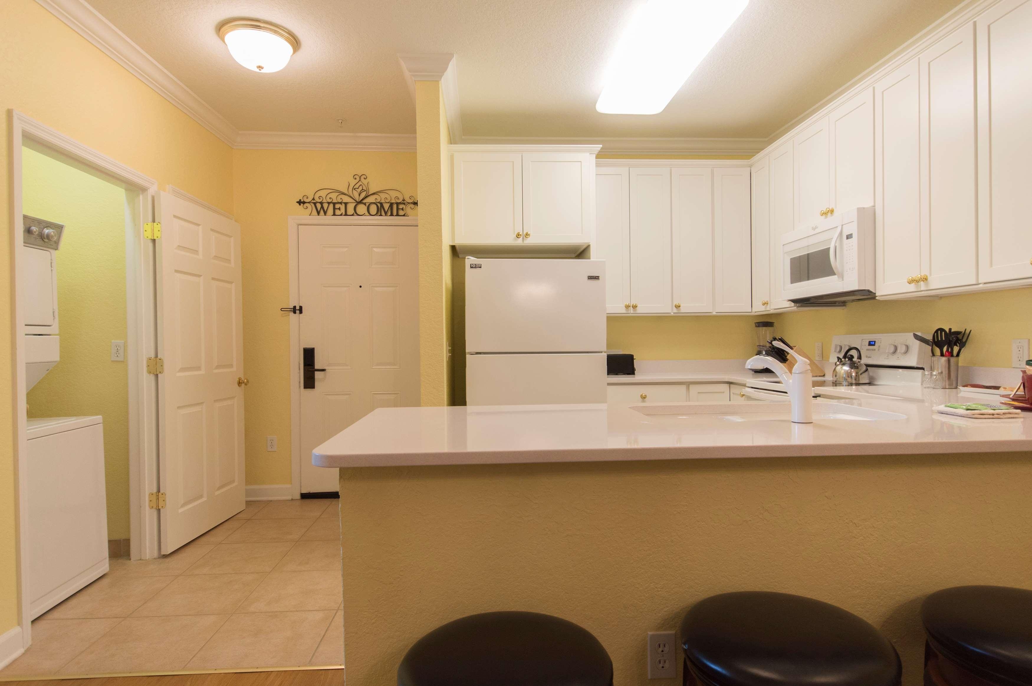 All air-conditioned two- and three-bedroom condominium suites feature home-away-from-home comforts including a fully equipped kitchen- separate living and dining areas- DVD player-television in each bedroom- spacious screened balconies- in-room washer-dryers and high-speed Internet access.