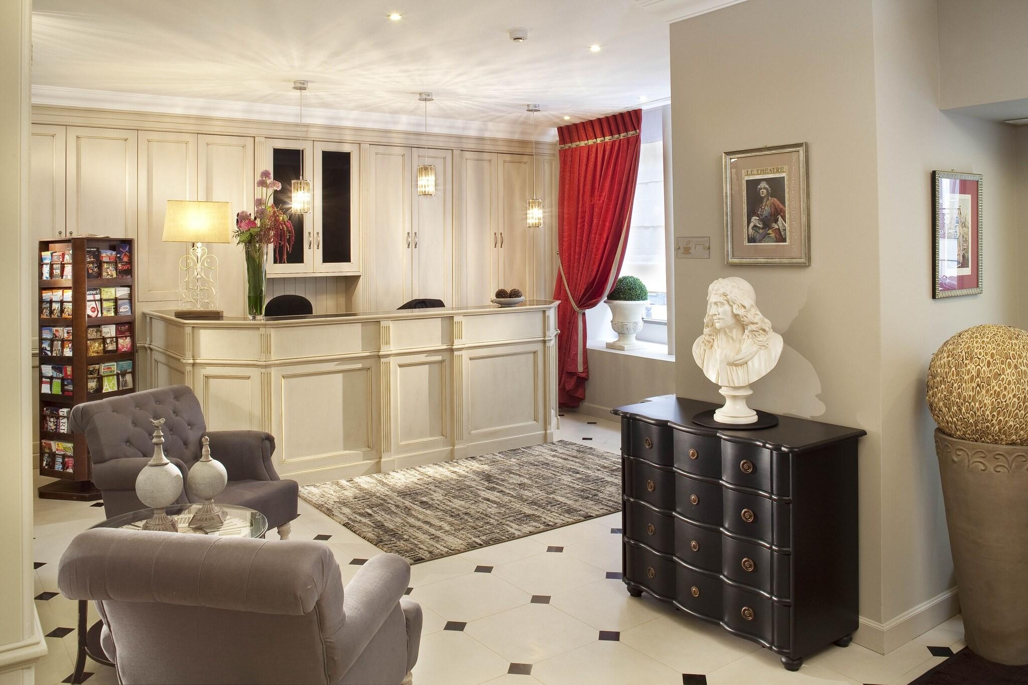 Very Good, 4.5Take in the views from a garden and make use of amenities such as complimentary wireless internet access and concierge services. Take advantage of the hotel's room service (during limited hours). Quench your thirst with your favorite drink at the bar/lounge. Buffet breakfasts are served on weekdays from 7:00 AM to 10:30 AM and on weekends from 7:30 AM to 10:30 AM for a fee. Featured amenities include complimentary newspapers in the lobby, dry cleaning/laundry services, and a 24-hour front desk. Make yourself at home in one of the 35 air-conditioned rooms featuring minibars and flat-screen televisions. Complimentary wireless internet access keeps you connected, and satellite programming is available for your entertainment. Private bathrooms with separate bathtubs and showers feature complimentary toiletries and hair dryers. Conveniences include phones, as well as laptop-compatible safes and desks. Distances are displayed to the nearest 0. 1 mile and kilometer. Grands Boulevards - 0. 1 km / 0. 1 mi- Folies Bergere - 0. 7 km / 0. 4 mi- Grevin Museum - 0. 7 km / 0. 4 mi- Boulevard Haussmann - 0. 8 km / 0. 5 mi- Les Halles - 1 km / 0. 6 mi- Place de la République - 1. 1 km / 0. 7 mi- Centre Pompidou - 1. 3 km / 0. 8 mi- Place de l'Opéra - 1. 4 km / 0. 9 mi- Canal Saint-Martin - 1. 4 km / 0. 9 mi- Palais Royal - 1. 4 km / 0. 9 mi- Galeries Lafayette - 1. 5 km / 0. 9 mi- Rue de Rivoli - 1. 5 km / 0. 9 mi- Theatre Mogador - 1. 7 km / 1 mi- Palais Garnier - 1. 7 km / 1 mi- La Carrousel du Louvre - 1. 8 km / 1. 1 mi. The nearest airports are: Paris Orly Airport (ORY) - 20. 3 km / 12. 6 miParis Charles de Gaulle Airport (CDG) - 29. 2 km / 18. 1 miThe preferred airport for Hôtel des Comédies is Paris Charles de Gaulle Airport (CDG). A stay at Hôtel des Comédies places you in the heart of Paris, within a 15-minute walk of Boulevard Haussmann and Place de la République. This boutique hotel is 1 mi (1. 7 km) from Palais Garnier and 1. 8 mi (2. 9 km) from Champs-Élysées.