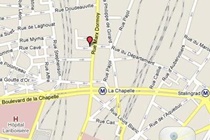 The hotel is nestled on a quiet street just off Rue Marx Dormoy. The 18th arrondissement is dominated by Montmartre, a large hill and bohemian district that boasts stunning views of central Paris. Nearby places of interest include the magnificent white-domed Sacre Coeur Basilica, the markets of Goutte d'Or and popular Pigalle hotspots like the Moulin Rouge. La Chapelle metro station is located in the vicinity, providing fast and easy access to other popular Paris destinations.