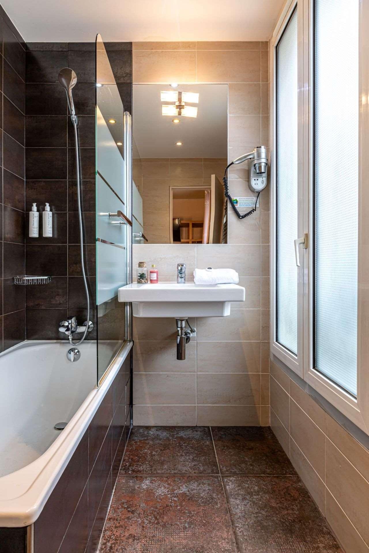 Very Good, 4The Ariane Montparnasse Hotel*, nestled in the heart of the Montparnasse district on a quiet pedestrian street, opens onto a charming tree-filled square. A short five-minute walk from the Pernety and Alesia metro stations and ten minutes from the Montparnasse train station, it's ideally located for exploring Paris. This vibrant neighborhood, popular with tourists and Parisians alike, offers a diverse array of restaurants, theaters, and attractions. Guests appreciate the elegant hourglass-themed decor, comfortable rooms with high-speed Wi-Fi, and attentive 24-hour service. A delicious buffet breakfast featuring freshly squeezed orange juice, homemade cakes, and traditional French breads and pastries is served daily. The Jardin du Luxembourg, the Catacombs, the Latin Quarter, and Bon Marché are just minutes away, while Paris Expo Porte de Versailles is a 15-minute drive.