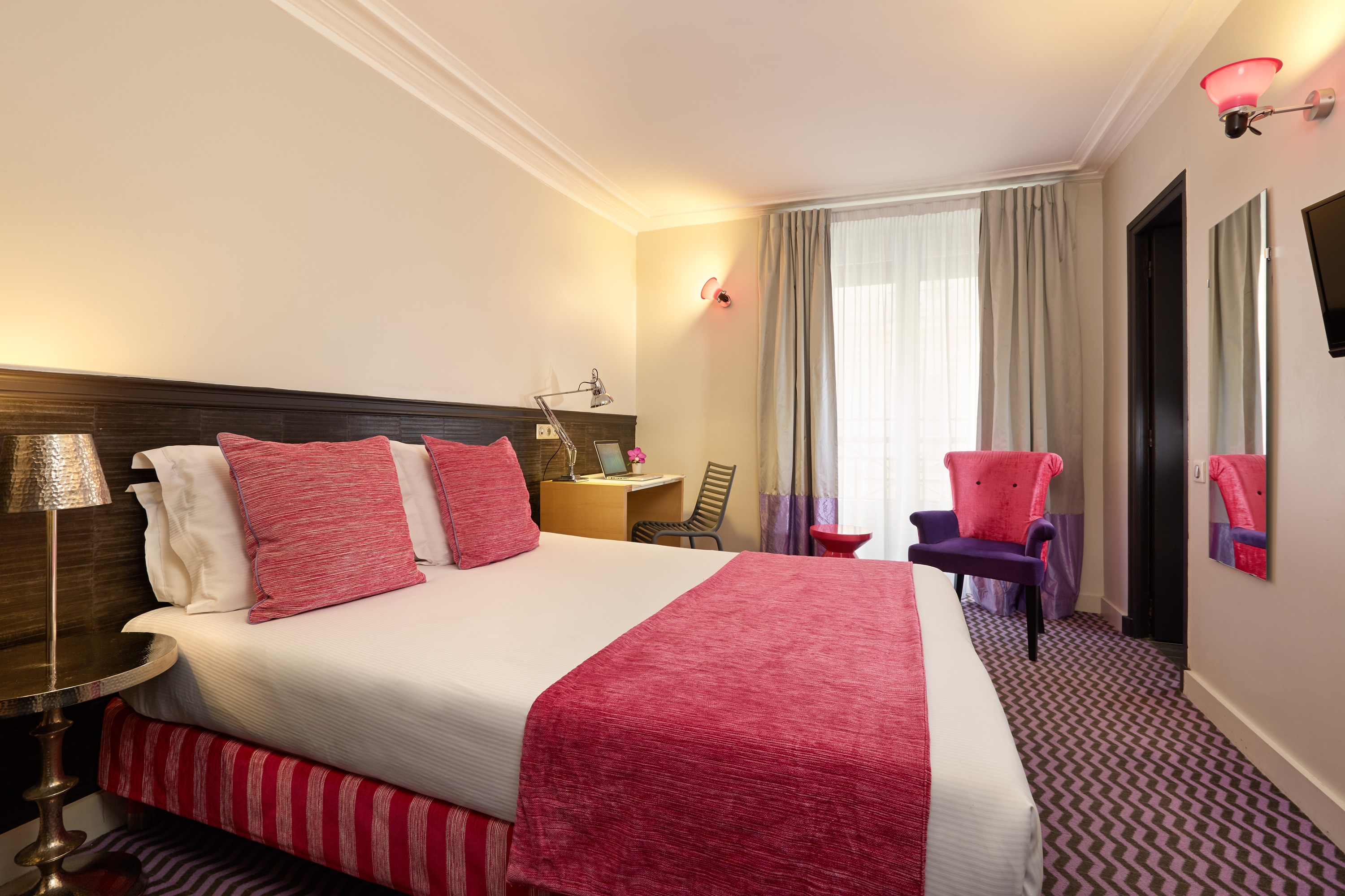 Average, 3.5This hotel is located in the centre of Paris, only a few steps from Garnier opera house. An abundance of shops, including the world famous department stores, Galeries Lafayette and Printemps, are within the vicinity. The nearest metro station is Chaussee d'Antin, located around 50 m away. Renovated in 2013, this hotel offers a total of 48 rooms spread over 5 floors. The hotel foyer possesses a 24-hour reception with a safe. The facilities include a lift, a breakfast room and Internet access. Guests may also use the laundry service available. The en suite rooms are equipped with a hairdryer, a direct dial telephone, Flat Screen TV and a radio. They also include a double bed, modem Internet access and central heating. Guests are able to choose their breakfast from the buffet offered. It is possible to book Bed & Breakfast.