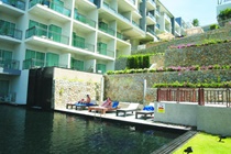 The hotel occupies a modern mid-rise complex set on a hill overlooking Kata Beach and the Andaman Sea.