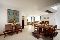 17 One Bedroom Suites can accommodate up to 2 adults and 2 children per room. This spacious room comprises 103 square meters and offers twin beds, a living room with a sofa bed, a dining area with 4 seats, fully equipped kitchen, individually controlled air-conditioning, TV with international satellite TV channels/programmes, digital safety box, refrigerator, tea and coffee making facilities, hairdryer, high-speed internet access, and IDD line telephone..