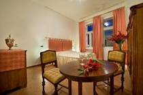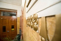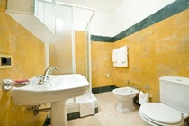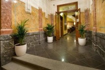 The hotel is in a historical resdiential block. The hotel building has a traditional pastel yellow coloured facade.