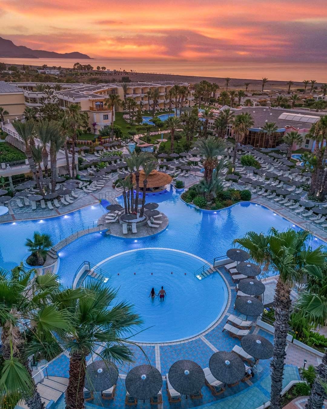 Excellent, 5This hotel is in an idyllic location, only 300 m away from the beach at Kalathos. It is only a 10-minute walk into the resort of Kalathos, where there is a selection of bars and tavernas. The architecture of the colonial-style palatial building reflects the influence of past cultures and previous inhabitants of the island. Cascading waterfalls, sun terraces and lush vegetation wrap around the split level swimming pools creating a unique tropical oasis. The hotel offers a wide range of facilities including a TV/video lounge and a small supermarket market. Comfortable rooms with a balcony or terrace with a side sea-view await guests.