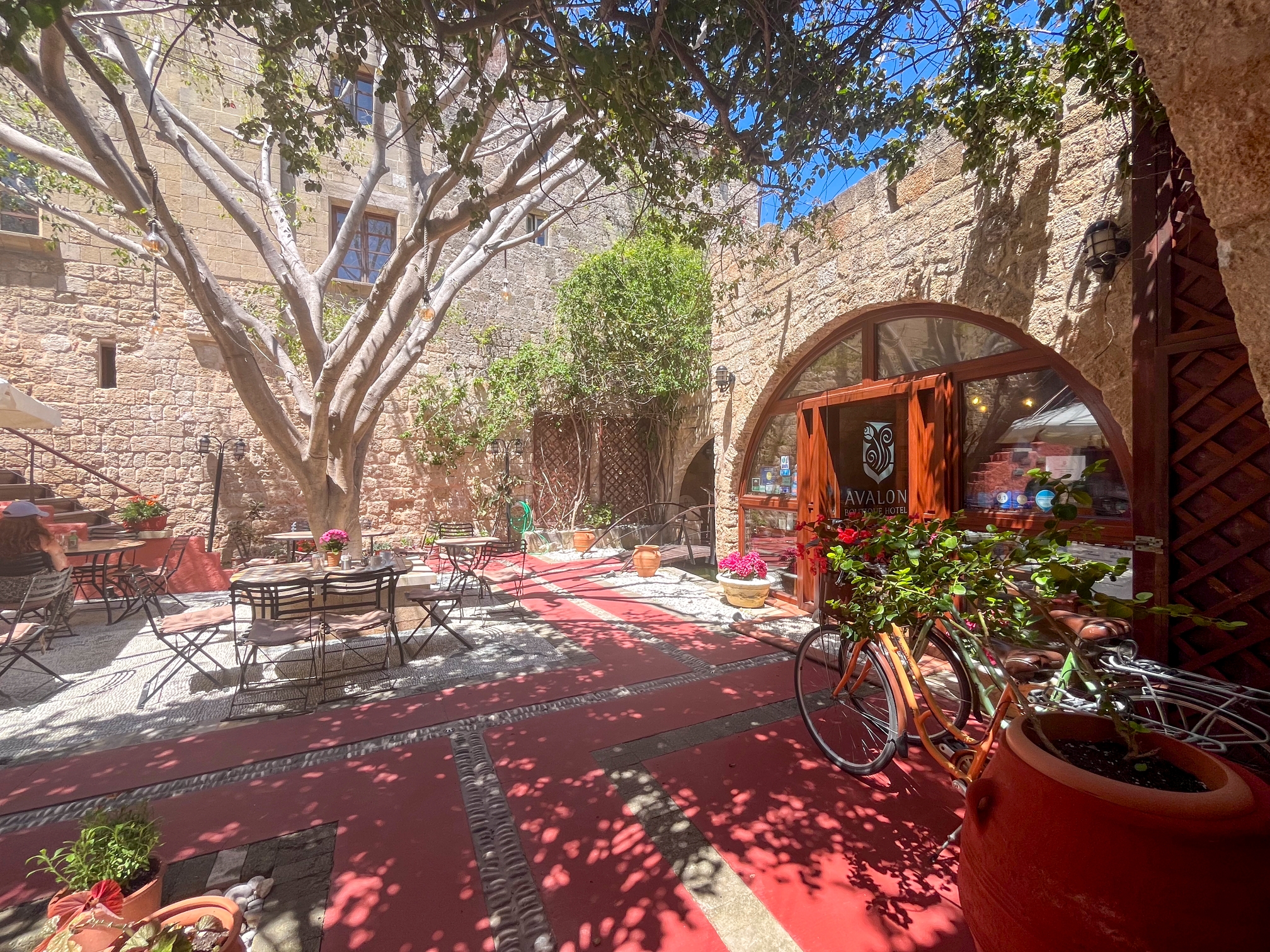Very Good, 4.5The Avalon Boutique Hotel Rhodes offers a unique experience within a meticulously restored medieval building, blending historic charm with modern comforts. Located just steps from the Grand Master's Palace and Knights' Street in the heart of the Old Town, this idyllic retreat provides a tranquil escape. The hotel features six suites, one villa, and one deluxe room, each boasting a veranda with views of the Medieval City, the port, or the enchanting courtyard garden. Warm, modern décor complements the historic architecture, creating individually styled rooms. Guests can enjoy a delightful breakfast of homemade jams, fresh juices, and traditional treats, served in their room or on their veranda. Coffee, tea, drinks, and snacks are also available in the beautiful garden. Experience the allure of medieval Rhodes with the convenience of modern Greek hospitality at the Avalon Boutique Hotel.