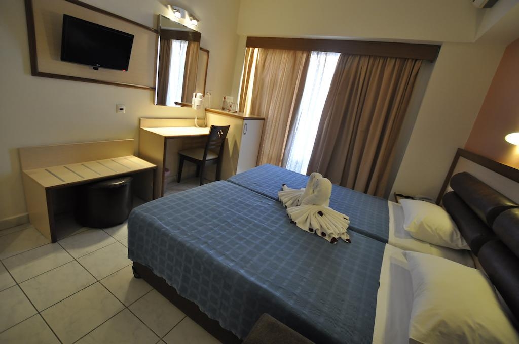 Very Good, 4Enjoy a central location in Rhodes at the eco-certified Pearl Hotel. We're a short drive from Rhodes Port and the Palace of the Grand Master. Our 38 air-conditioned rooms feature private furnished balconies, Smart TVs, refrigerators, and complimentary Wi-Fi. Enjoy on-site amenities including an outdoor pool, bicycle rentals, a coffee shop/cafe, bar/lounge, and complimentary breakfast. We also offer dry cleaning/laundry services, multilingual staff, luggage storage, and free self-parking. Nearby attractions include Bar Street, Kýmata Beach, and the Rhodes National Theatre. Diagoras Airport (RHO) is a convenient 13. 9 km away.