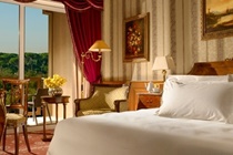 Deluxe rooms are decorated in an elegant traditional style with tastefully patterned wallpaper, antique furniture and artwork on the walls. They feature a balcony and views of the Villa Borghese gardens. Amenities include air-conditioning, a flat-screen satellite TV with pay-per-view content, mini-bar and work desk. The marble en-suite bathrooms feature a bathtub with integrated shower.