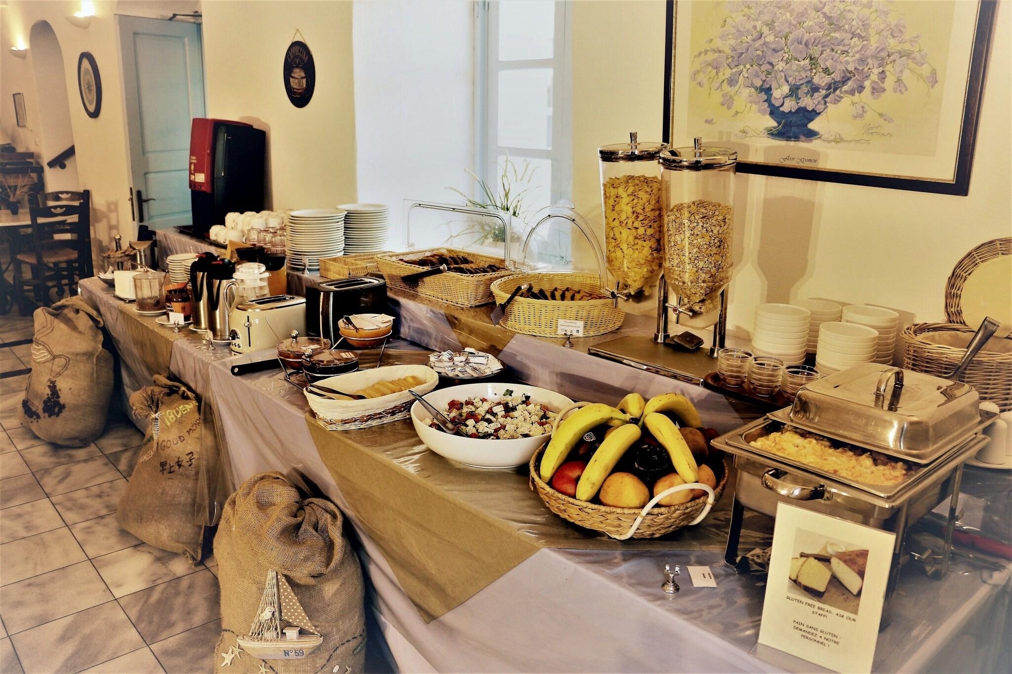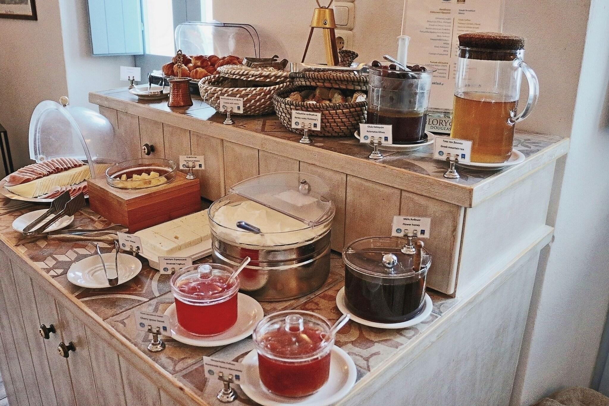 Very Good, 4.5Enjoy recreation amenities such as an outdoor pool or take in the view from a rooftop terrace. This hotel also features complimentary wireless internet access, a television in a common area, and tour/ticket assistance. Grab a bite from the snack bar/deli serving guests of Aethrio Sunset Village - Oia. Quench your thirst with your favorite drink at the bar/lounge. A complimentary full breakfast is served daily from 8:30 AM to 10:30 AM. Featured amenities include multilingual staff, laundry facilities, and a safe deposit box at the front desk. For a surcharge, guests may use a roundtrip airport shuttle (available 24 hours) and a ferry terminal shuttle. Make yourself at home in one of the 19 air-conditioned rooms featuring refrigerators and flat-screen televisions. Rooms have private balconies. Complimentary wireless internet access keeps you connected, and satellite programming is available for your entertainment.