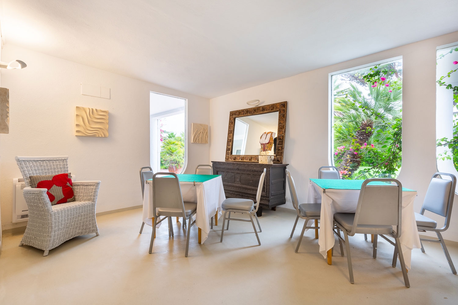 Average, 3.5This spa hotel sits directly on the stunning Santa Margherita beach, offering spectacular sea views. Located 4 km from Pula and 30 km from Cagliari International Airport, this hotel provides convenient access to both the city and travel hub. Built in 1969 and partially renovated, the hotel offers 188 rooms across two floors. Guests can enjoy various amenities, including a 24-hour reception, safe, game room, TV room, currency exchange, and parking. Dining options include a café, bar, and restaurant with highchairs available. Business travelers will appreciate the conference room and internet access. For leisure, guests can utilize the bicycle hire, children's playground, and kids' club (Italian speaking) for ages 4-11. Room and laundry services are also available. The en suite rooms feature hairdryers, telephones, satellite/cable TV, minibars, air conditioning, balconies or terraces (some with sea views), and central heating. A large outdoor pool with a separate children's area, pool bar, and sun terrace with parasols and deck chairs await guests. Additionally, the hotel offers an indoor pool, gym (for a fee), and spa with a hot tub, sauna, steam room, and massages (for a fee). Sports enthusiasts can enjoy various on-site and beach activities, including aerobics, water aerobics, water skiing (fee), windsurfing (fee), diving (dive school available for a fee), canoes, pedalos, beach volleyball, tennis (fee), table tennis, bocce, mini golf, billiards, and snooker. A varied daily entertainment program is available from June 1st to September 30th, with a kids' club operating from June 15th to September 15th.