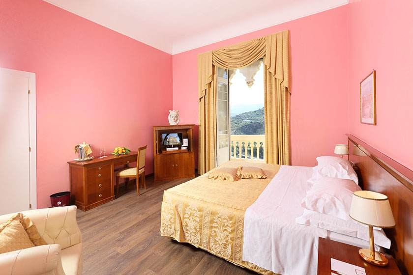 Very Good, 4The Excelsior Palace Hotel Taormina has been welcoming guests since 1904, just a few meters from the city center, situated on a picturesque promontory that offers a stunning view. Genuine hospitality and a warm welcome, combined with a unique elegance and culture make this historic 4-star hotel in Taormina center one of the most attractive in all of Sicily. Ideal for a family holiday, romantic getaway or business trip, the Excelsior Palace Hotel is the perfect location for business meetings, weddings and events in Taormina . Room Description: Classic Rooms: window and internal courtyard viewSuperior Rooms: window, either with view of Mount Etna and side view of Naxos Bay or with city view and side sea viewSuperior Plus Rooms: balcony, city view and side sea viewDeluxe Rooms: balcony, front view of Mount Etna and side view of Naxos BayElegance Rooms with Window: upper floor and front sea viewElegance Rooms with Balcony: ground floor and front sea viewCIR code: 19083097A201090